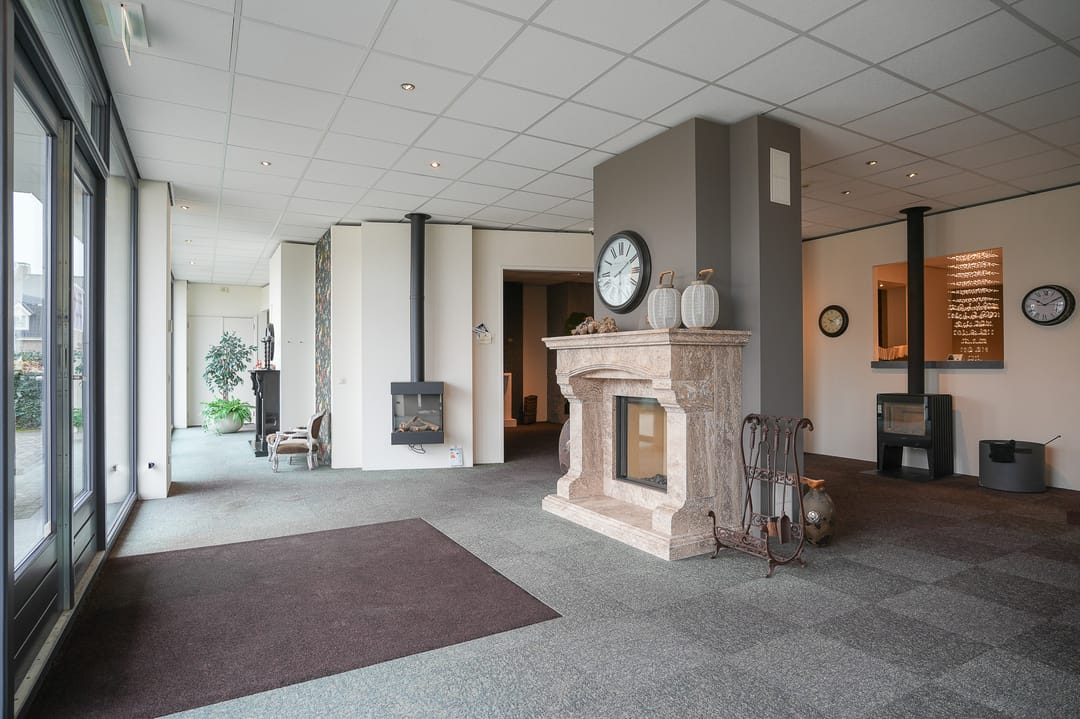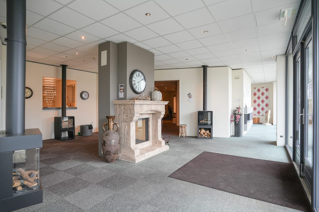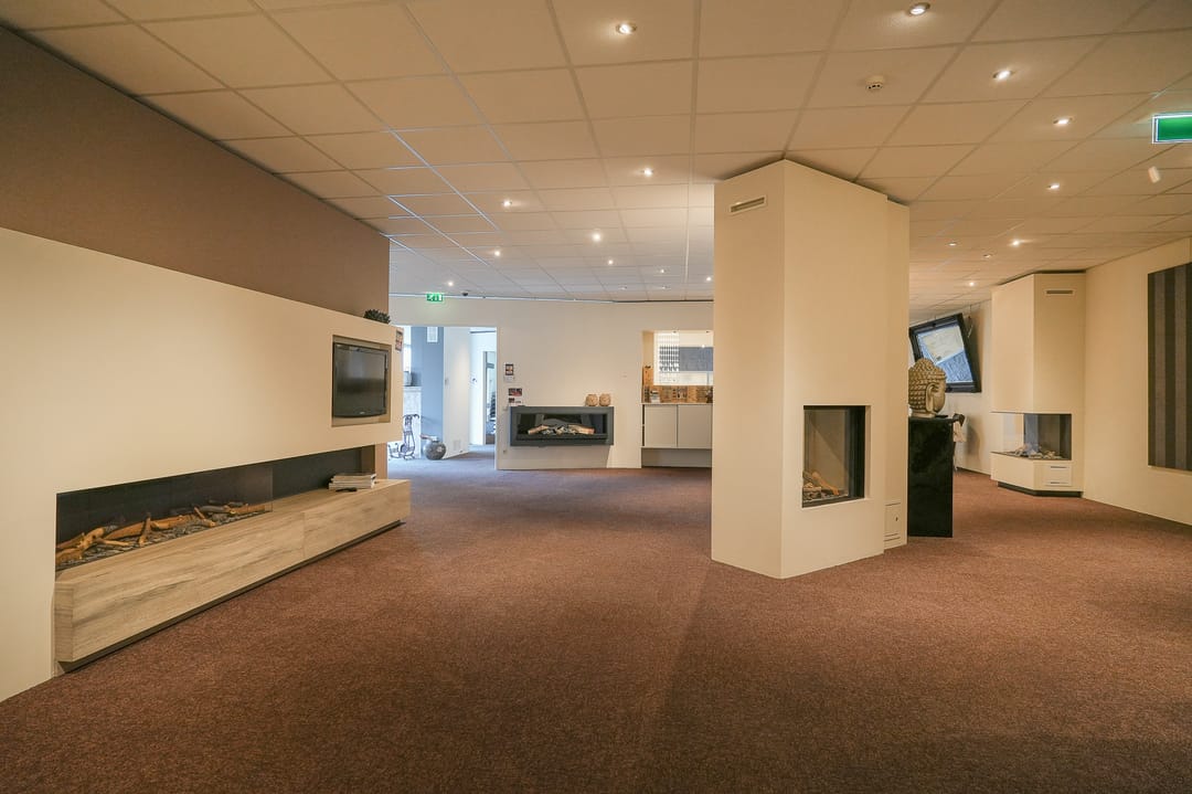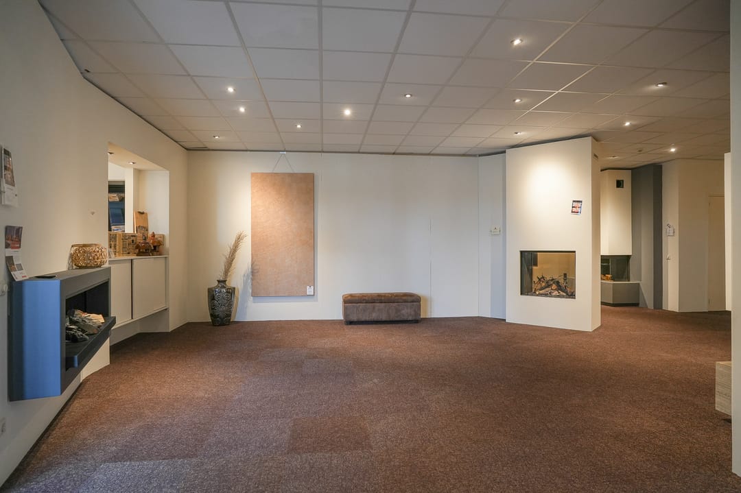 De showroom is momenteel ingedeeld met tussenwanden, waardoor een logische en prettige routing ontstaat en bezoekers eenvoudig door de ruimte kunnen bewegen. Indien gewenst kunnen deze wanden worden verwijderd, waardoor een open en flexibel indeelbare ruimte ontstaat.