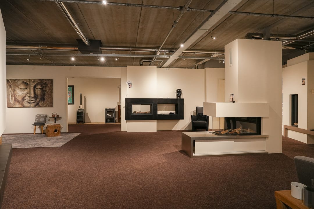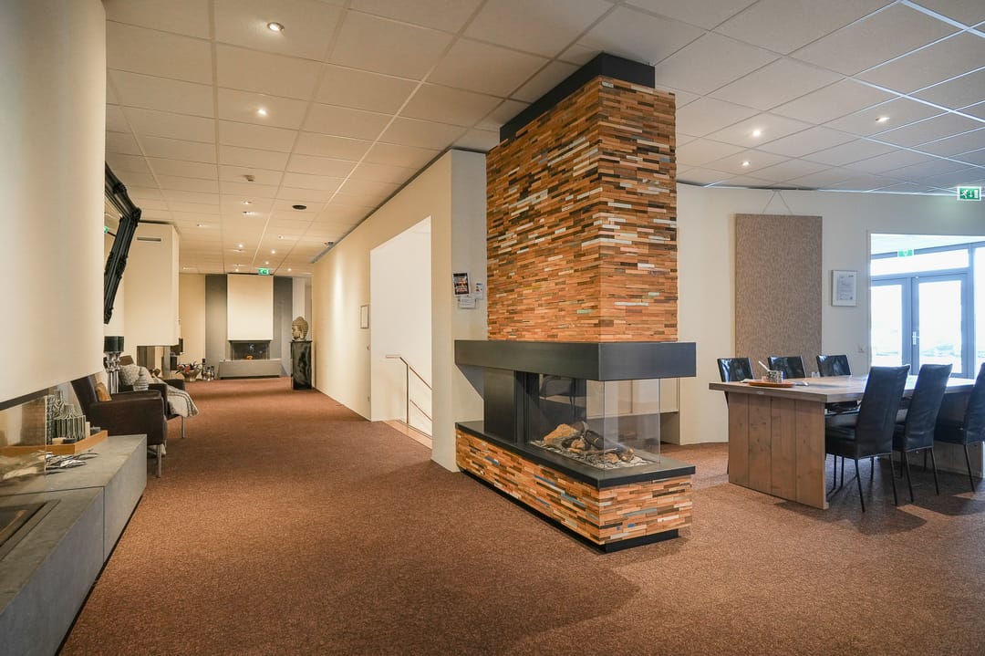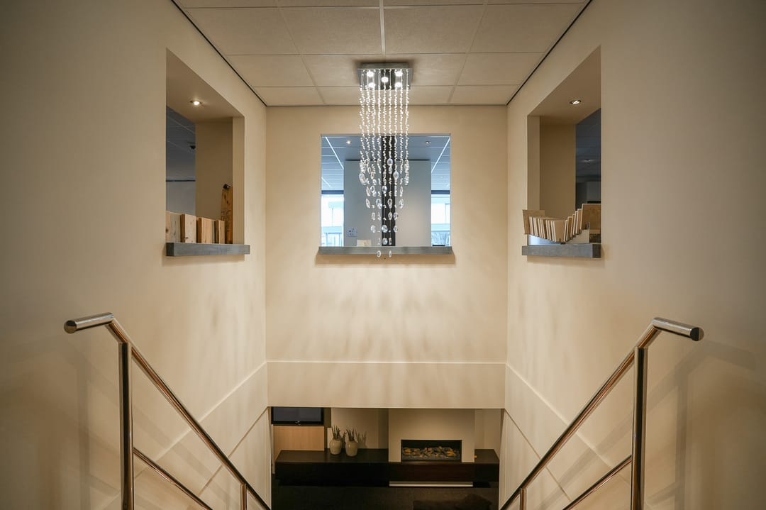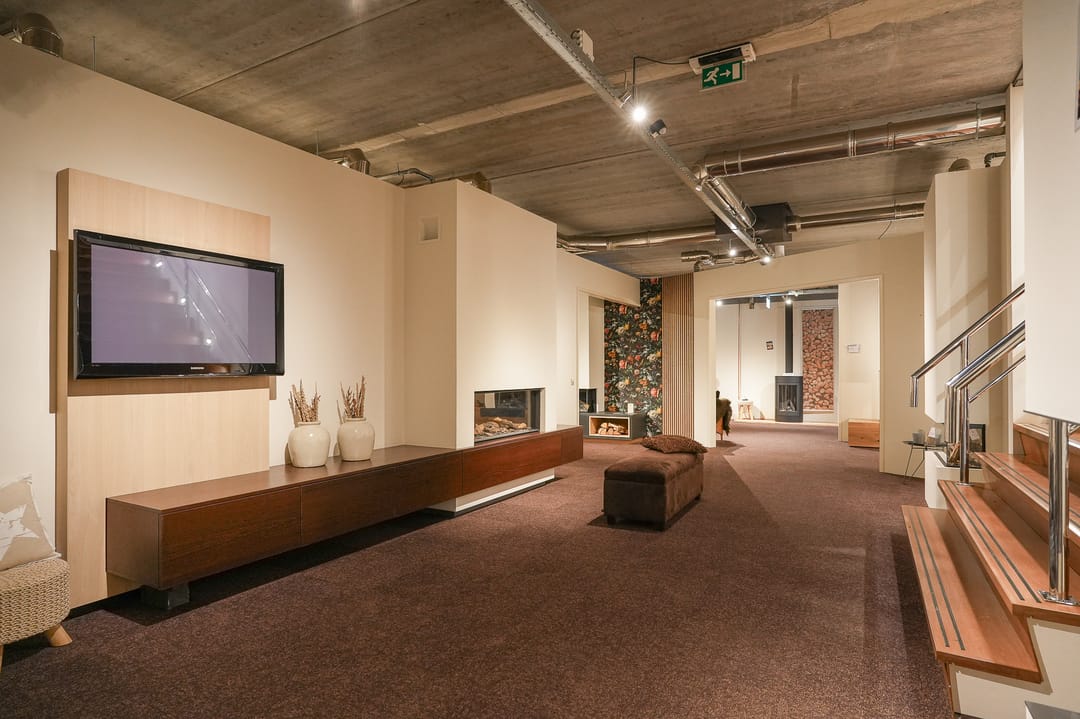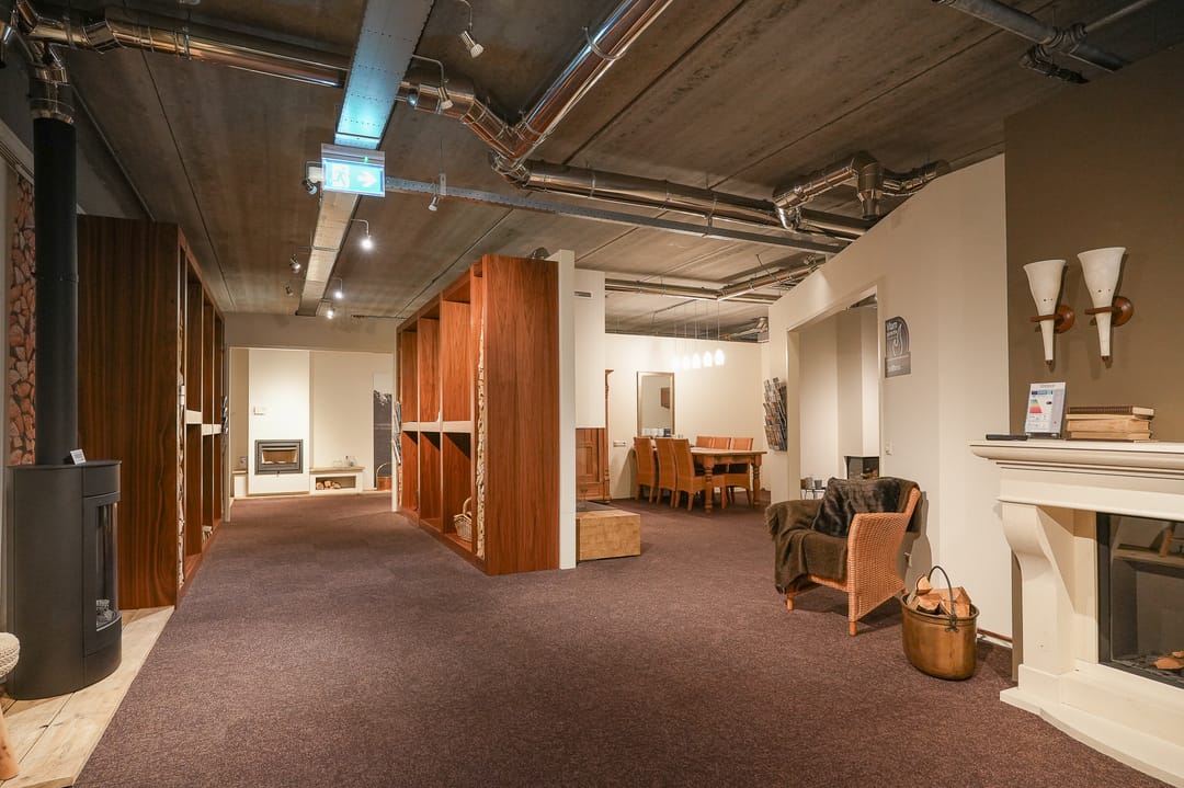 De showroom is momenteel ingedeeld met tussenwanden, waardoor een logische en prettige routing ontstaat en bezoekers eenvoudig door de ruimte kunnen bewegen. Indien gewenst kunnen deze wanden worden verwijderd, waardoor een open en flexibel indeelbare ruimte ontstaat.