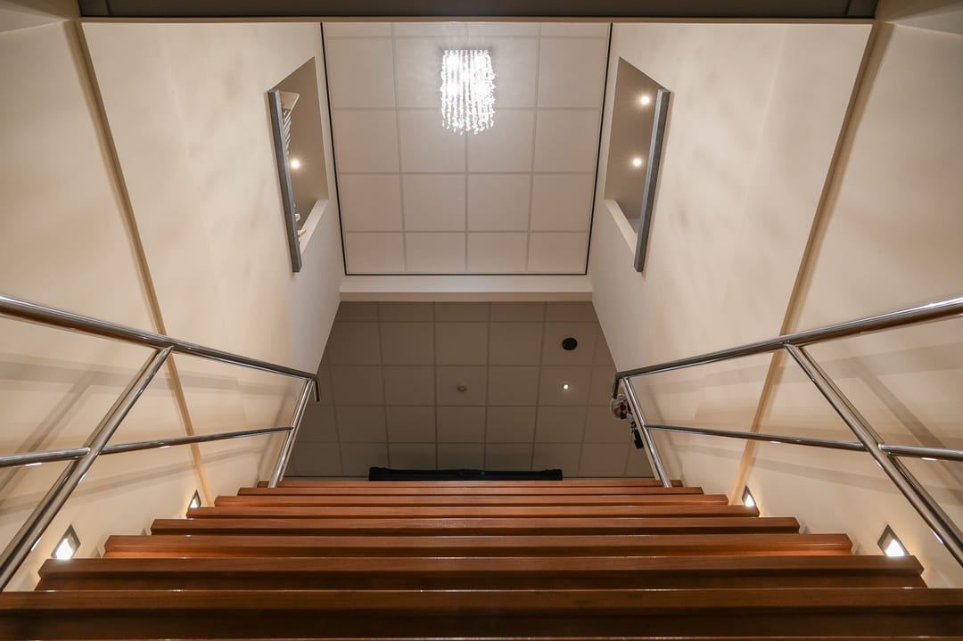 Het souterrain is bereikbaar via een brede vaste trap en beschikt daarnaast over een goederenlift. Hierdoor kunnen goederen efficiënt vanuit het magazijn naar de benedenverdieping worden getransporteerd.