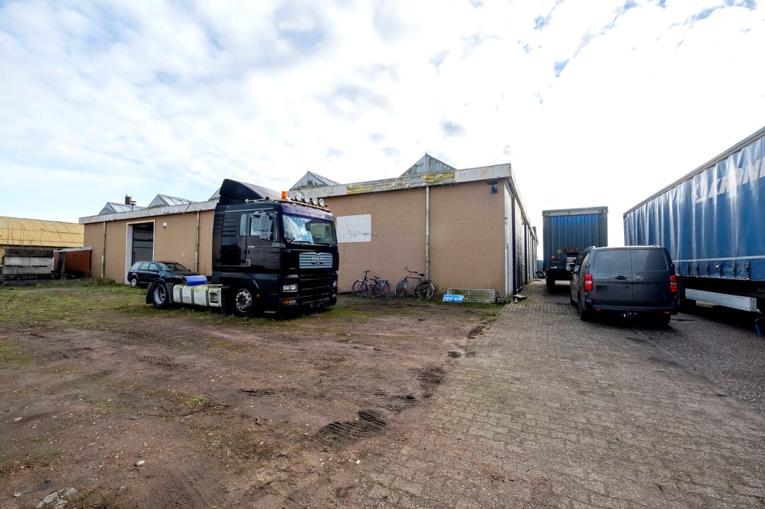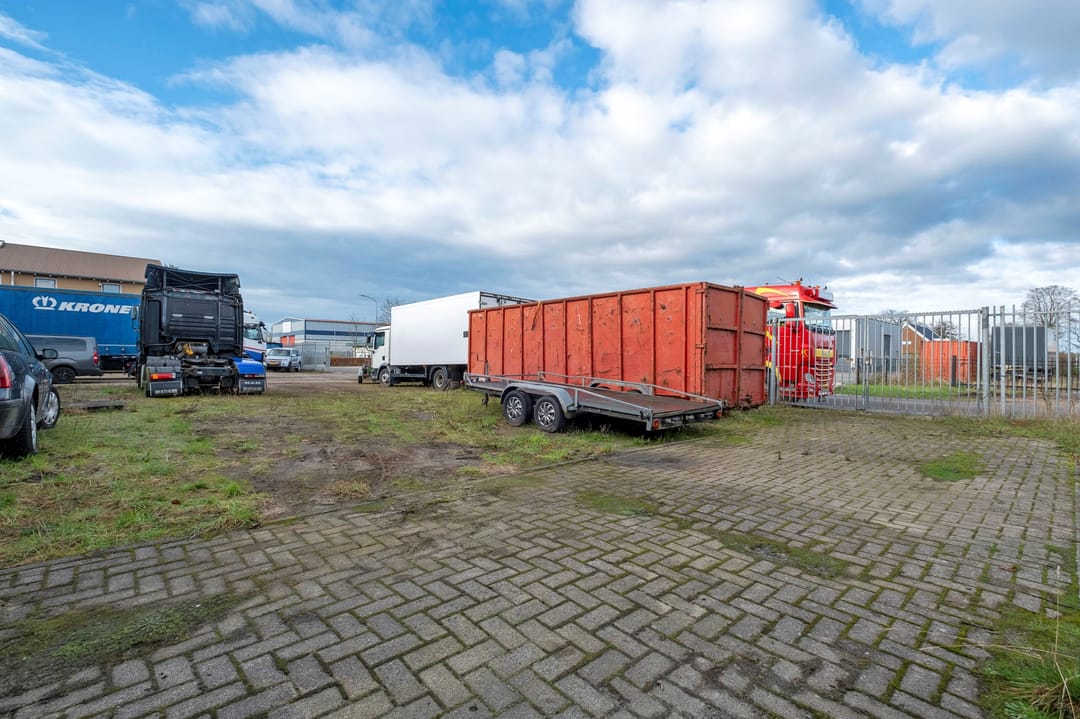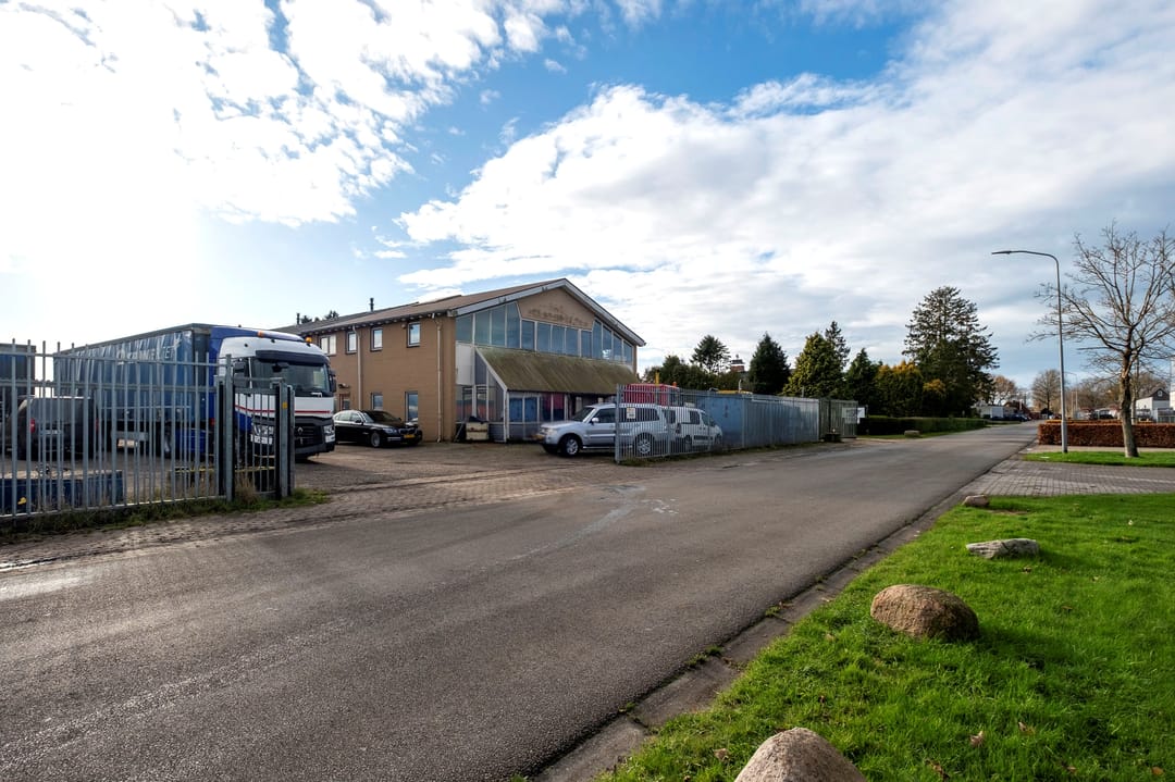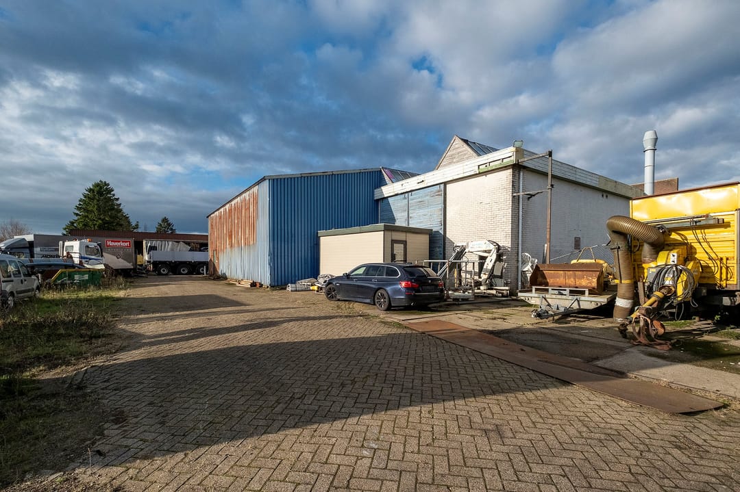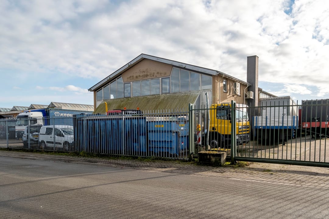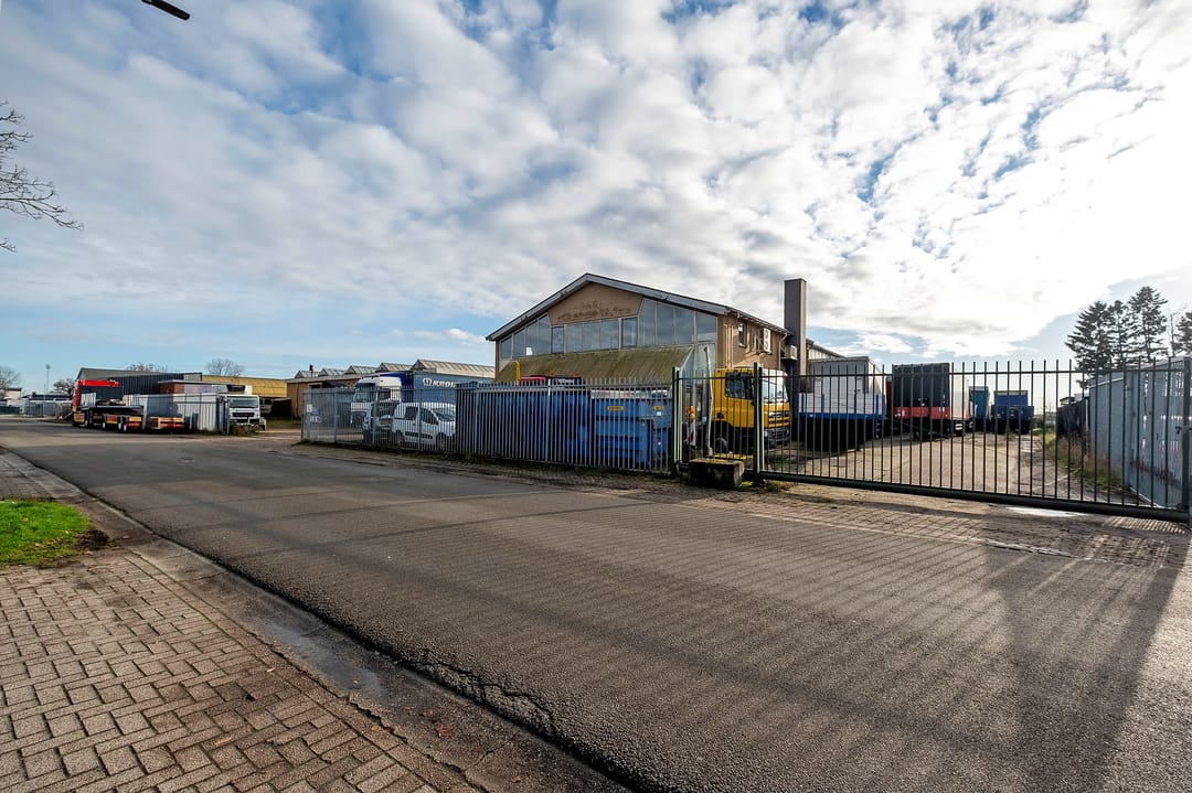 Bedrijfsruimte van ca. 2300 m². Verdeeld over een gebouw met verdieping(kantoor), twee gebouwen plus een aanbouw. Grotendeels terreinverharding, onder- en bijgelegen grond. Totale grondopervlak ca. 8000m².