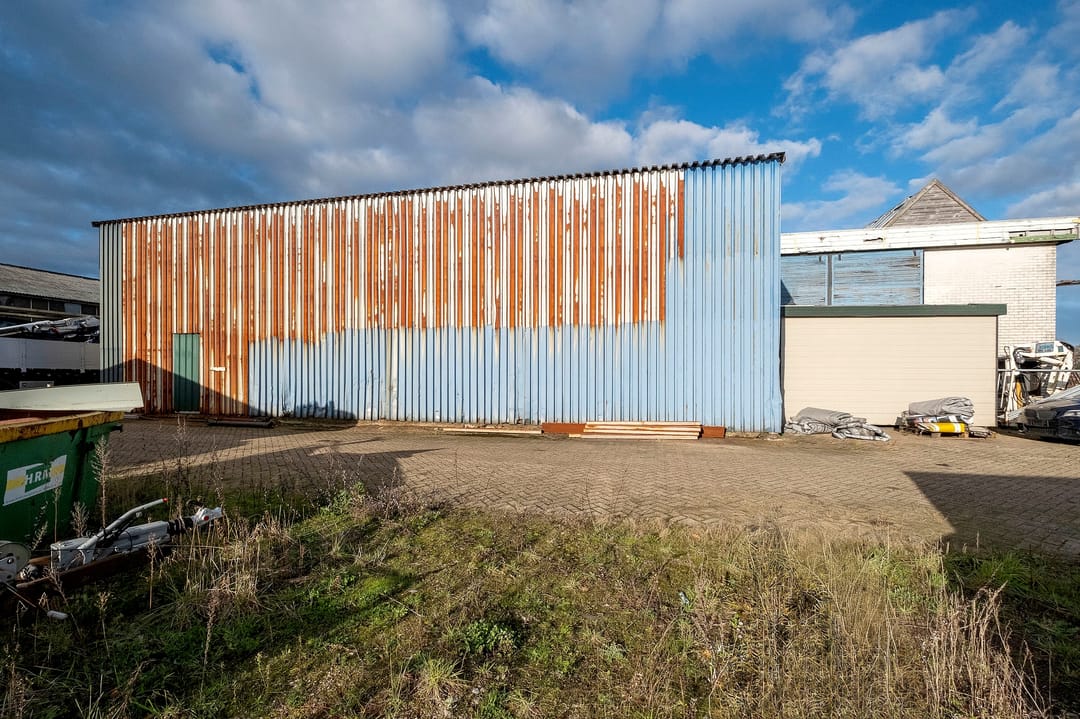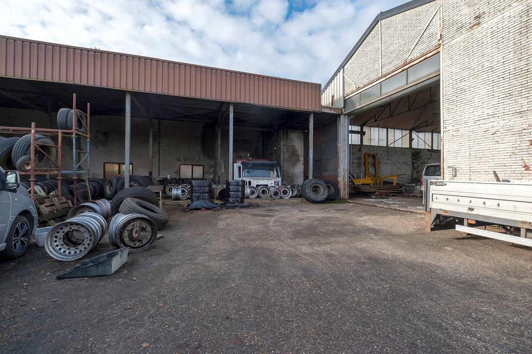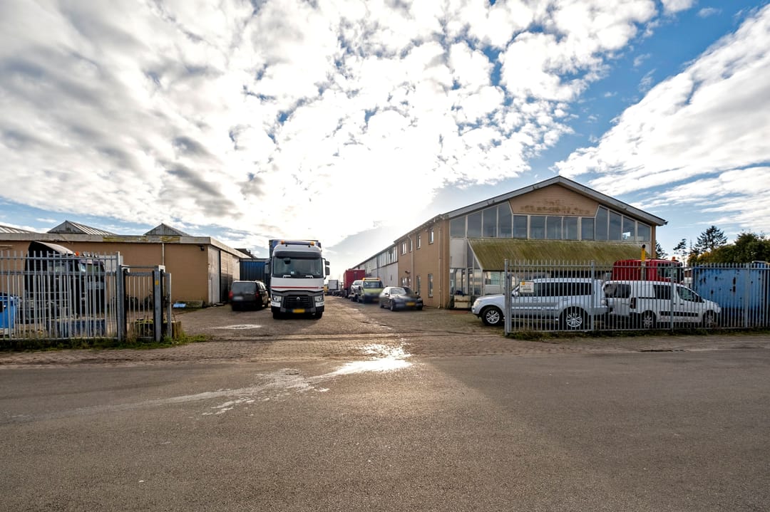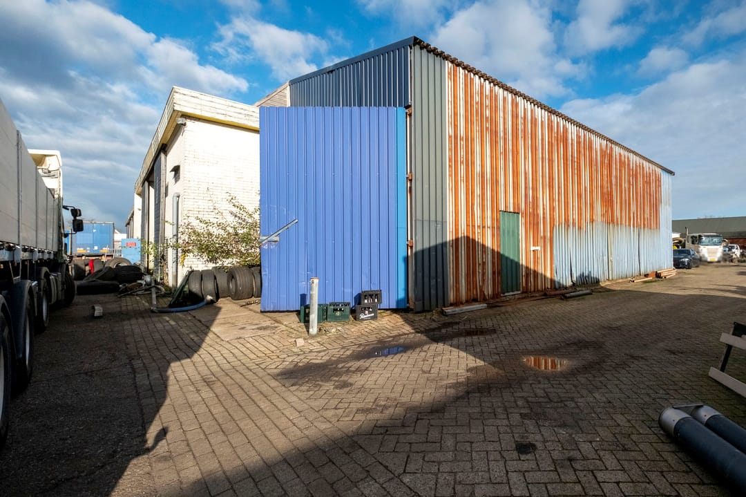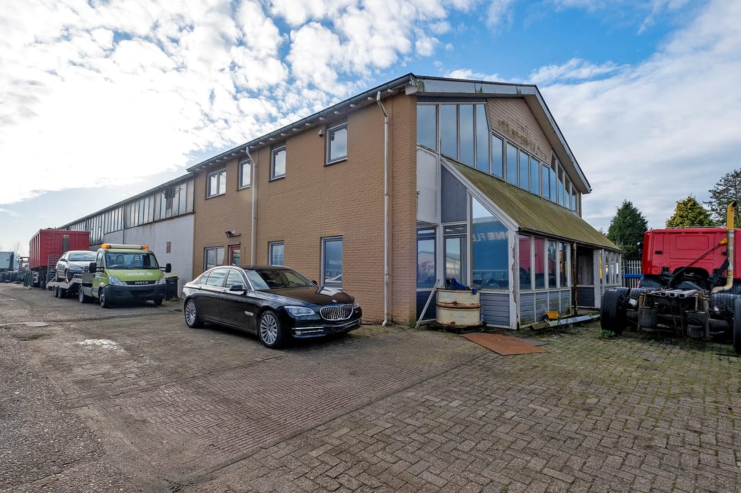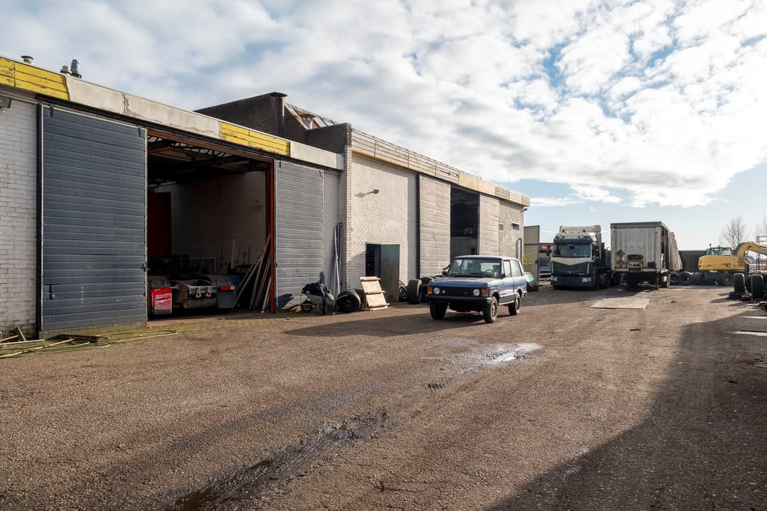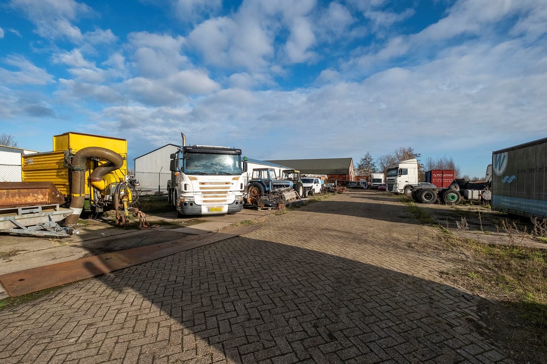 Bedrijfsruimte van ca. 2300 m². Verdeeld over een gebouw met verdieping(kantoor), twee gebouwen plus een aanbouw. Grotendeels terreinverharding, onder- en bijgelegen grond. Totale grondopervlak ca. 8000m².