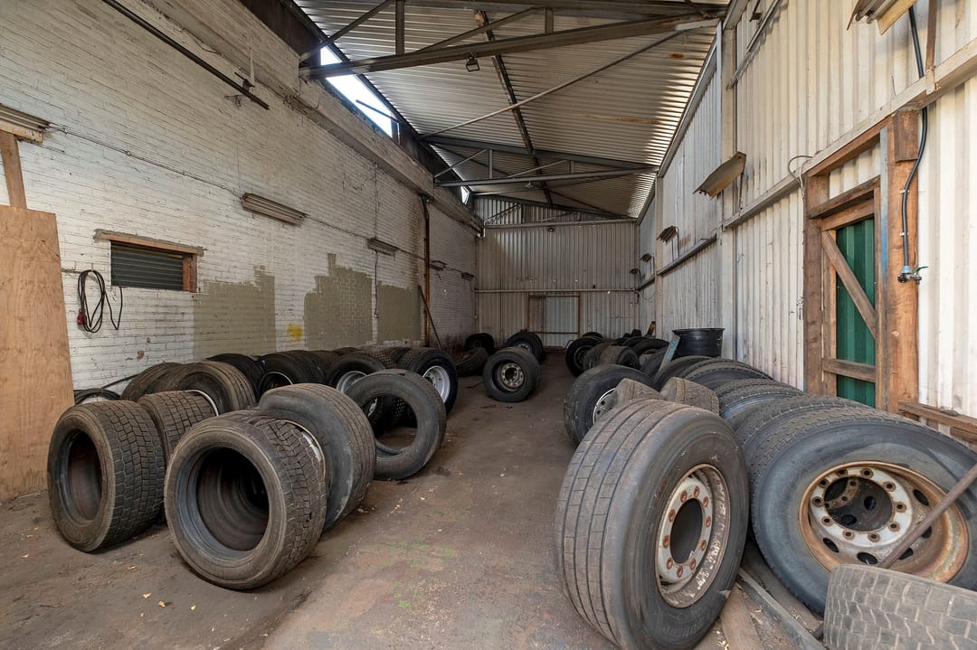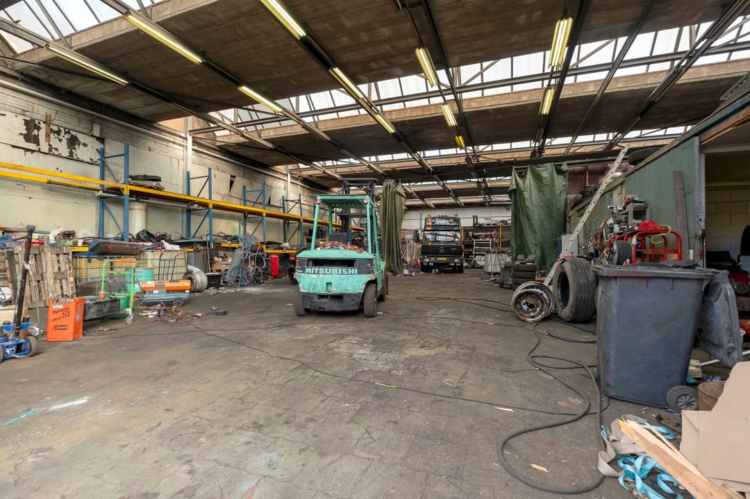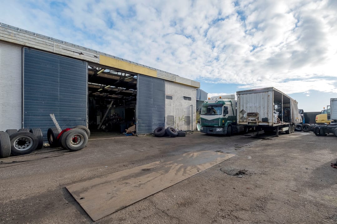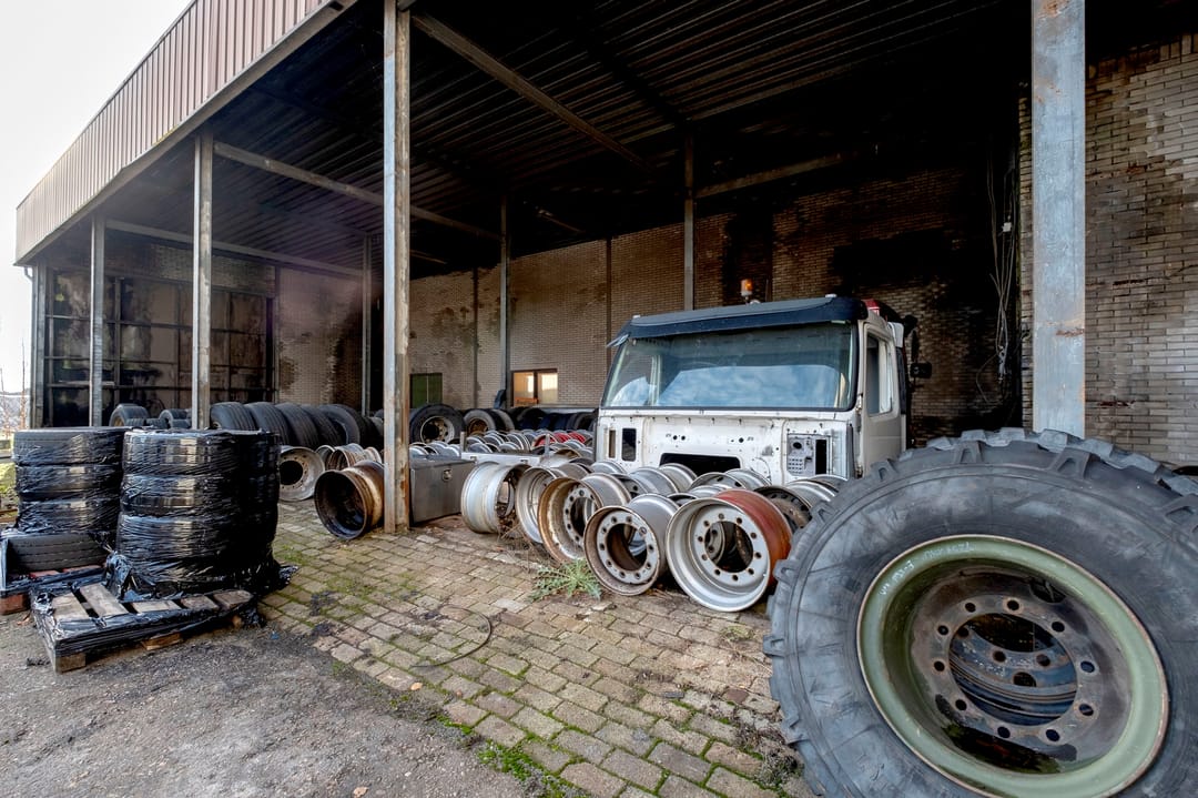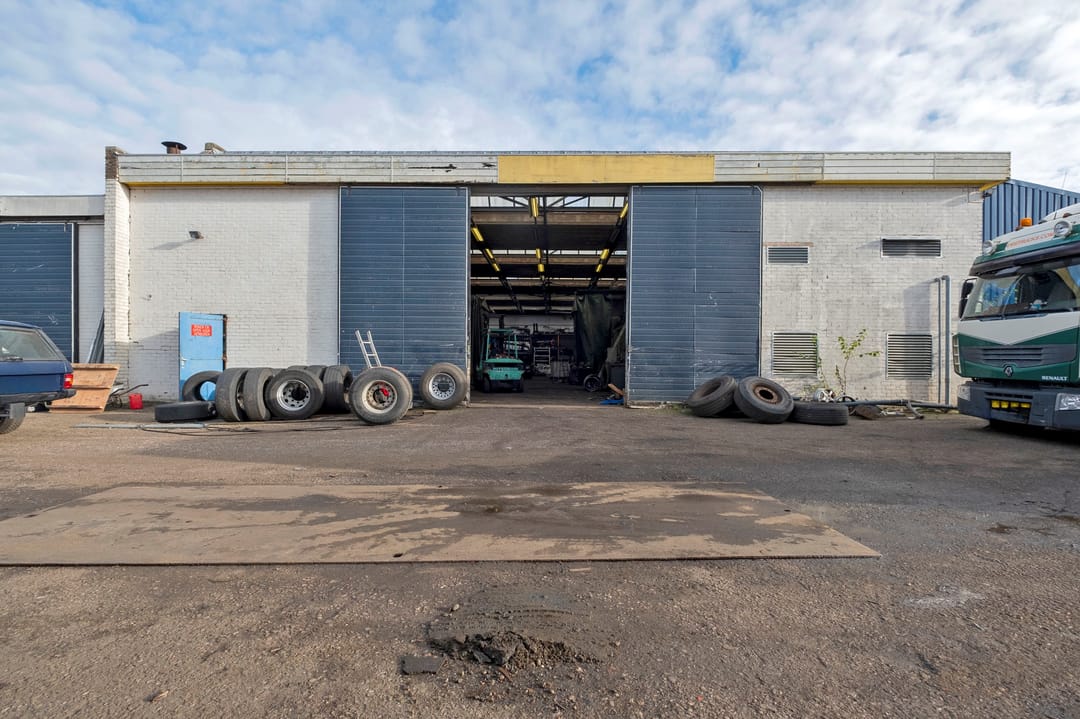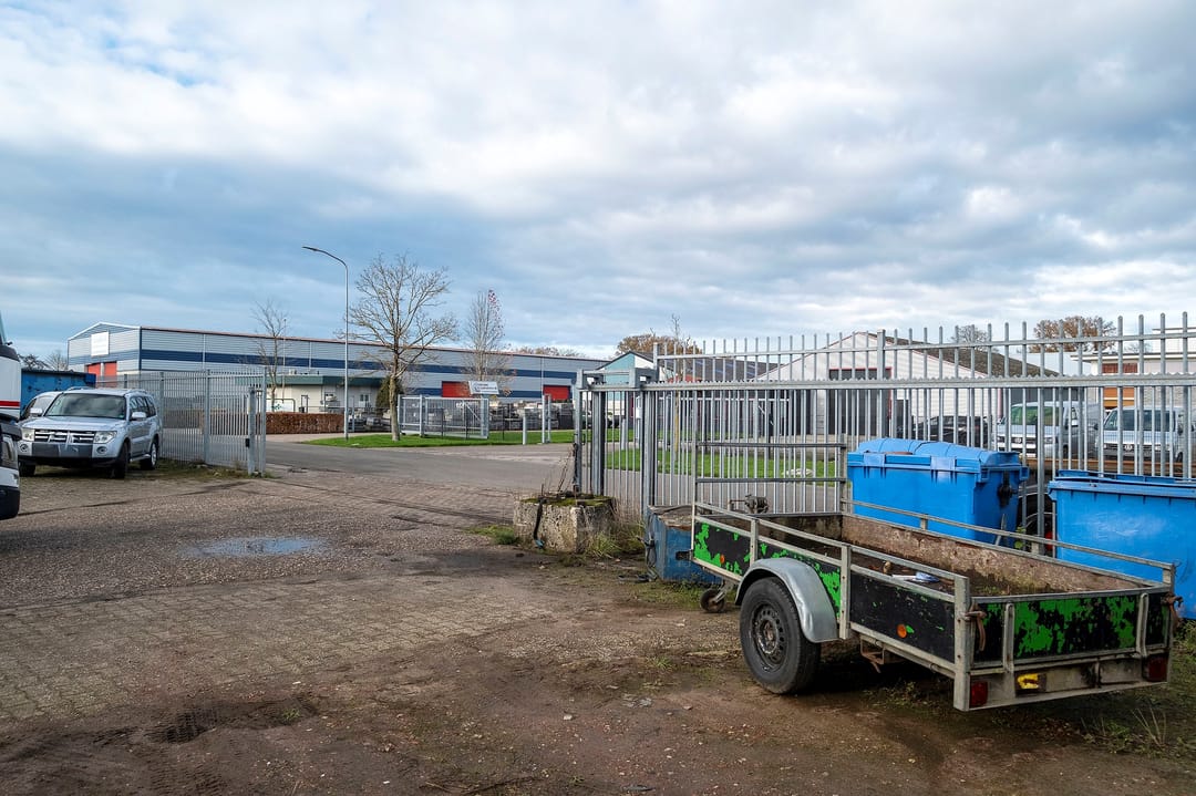 Bedrijfsruimte van ca. 2300 m². Verdeeld over een gebouw met verdieping(kantoor), twee gebouwen plus een aanbouw. Grotendeels terreinverharding, onder- en bijgelegen grond. Totale grondopervlak ca. 8000m².