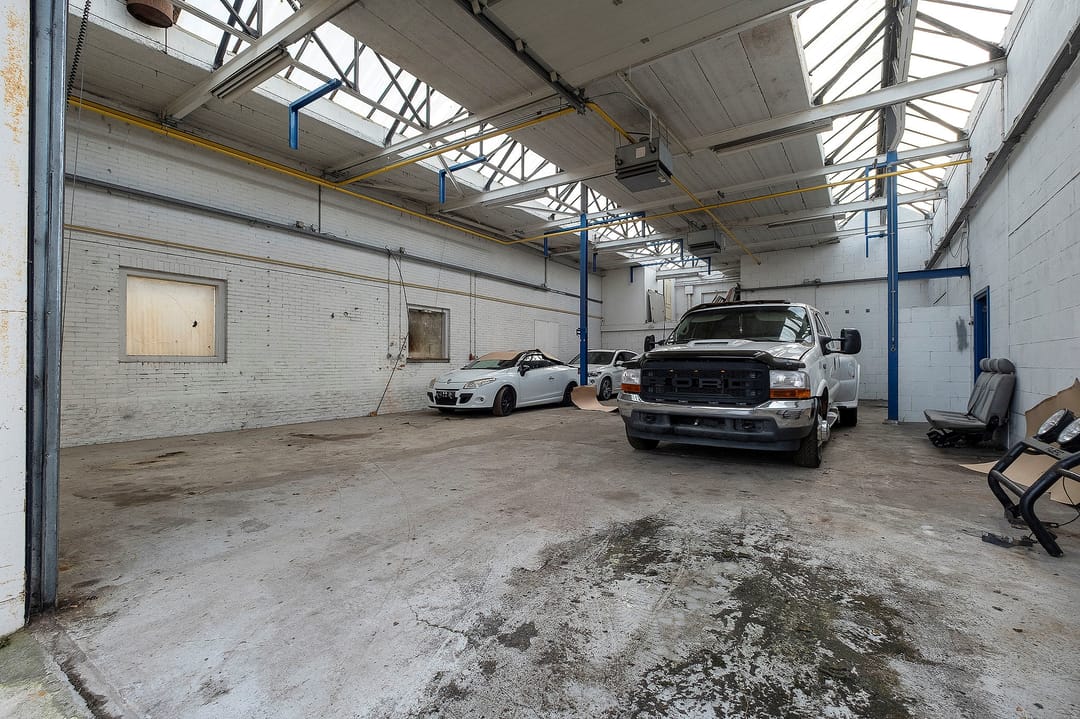 - Rooflights, overhead doors, three-phase electric power, concrete floor, heater, toilet and built-in fittings