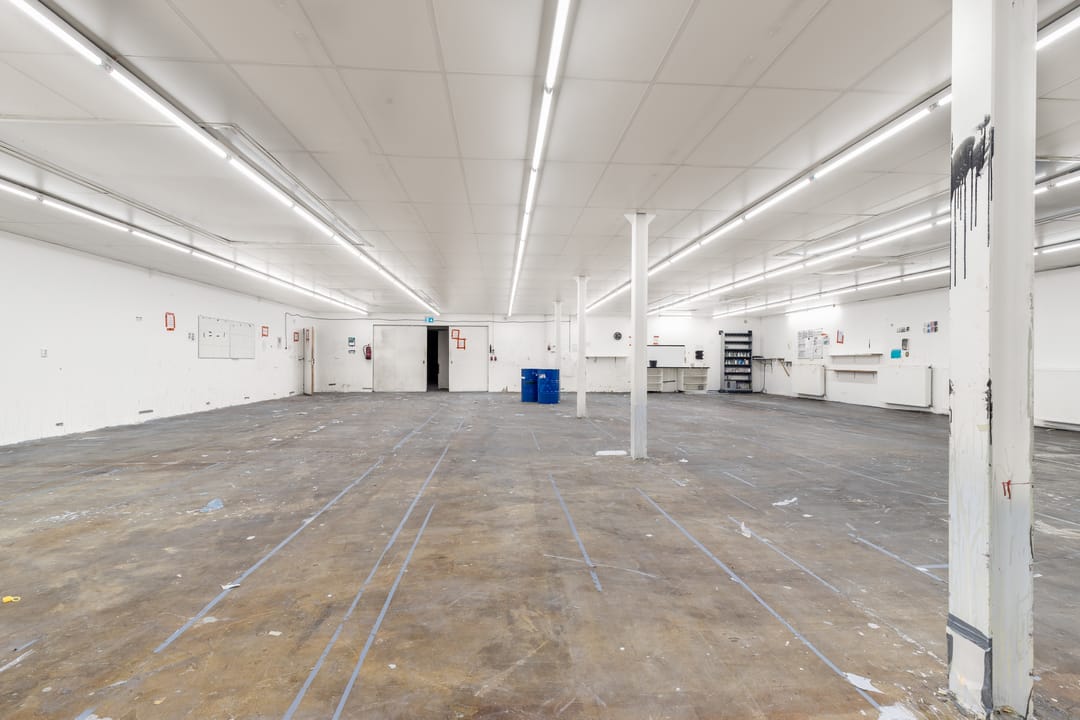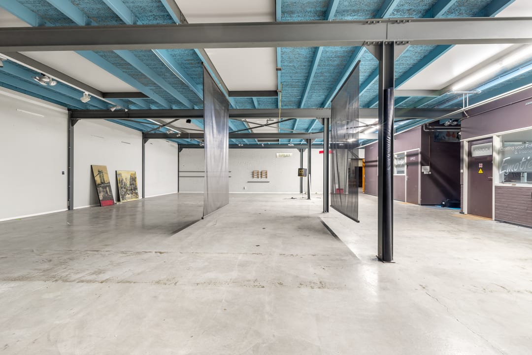 De ruimte is te betreden via de loopdeur aan de voorzijde en voor auto's via de overheaddeur.