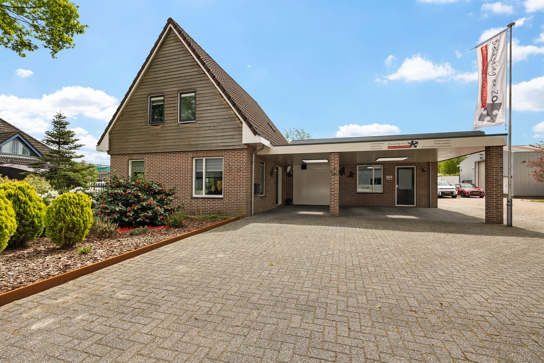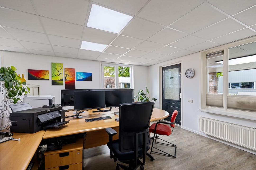 Vrijstaande bedrijfswoning met bedrijfsruimte en kantoorruimte, gelegen op bedrijventerrein Leek nabij het centrum van Leek.
