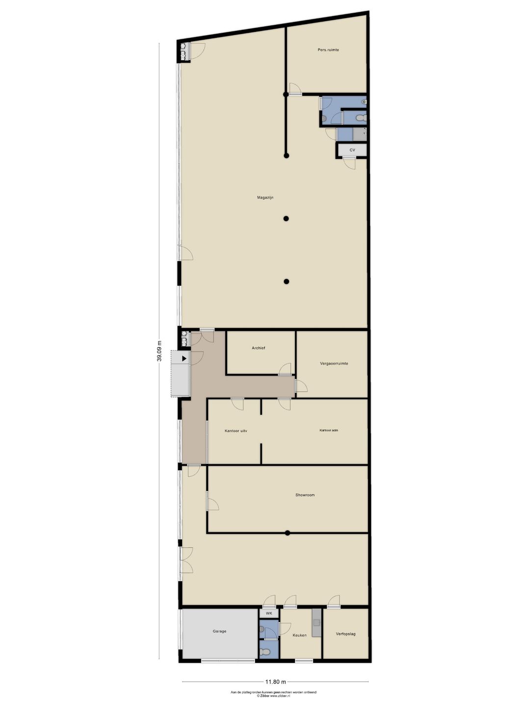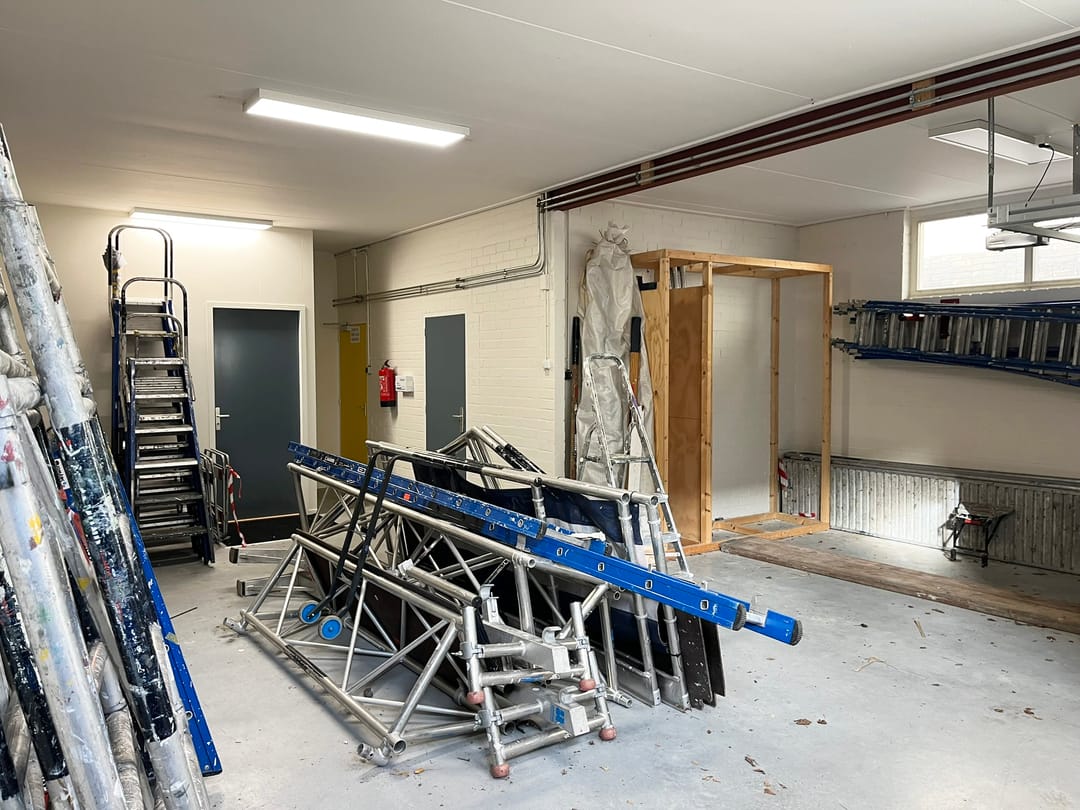 Bedrijfsruimte met kantoren te koop aan de Corellistraat te Leeuwarden.