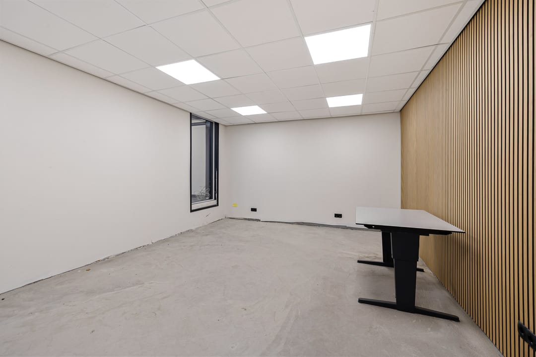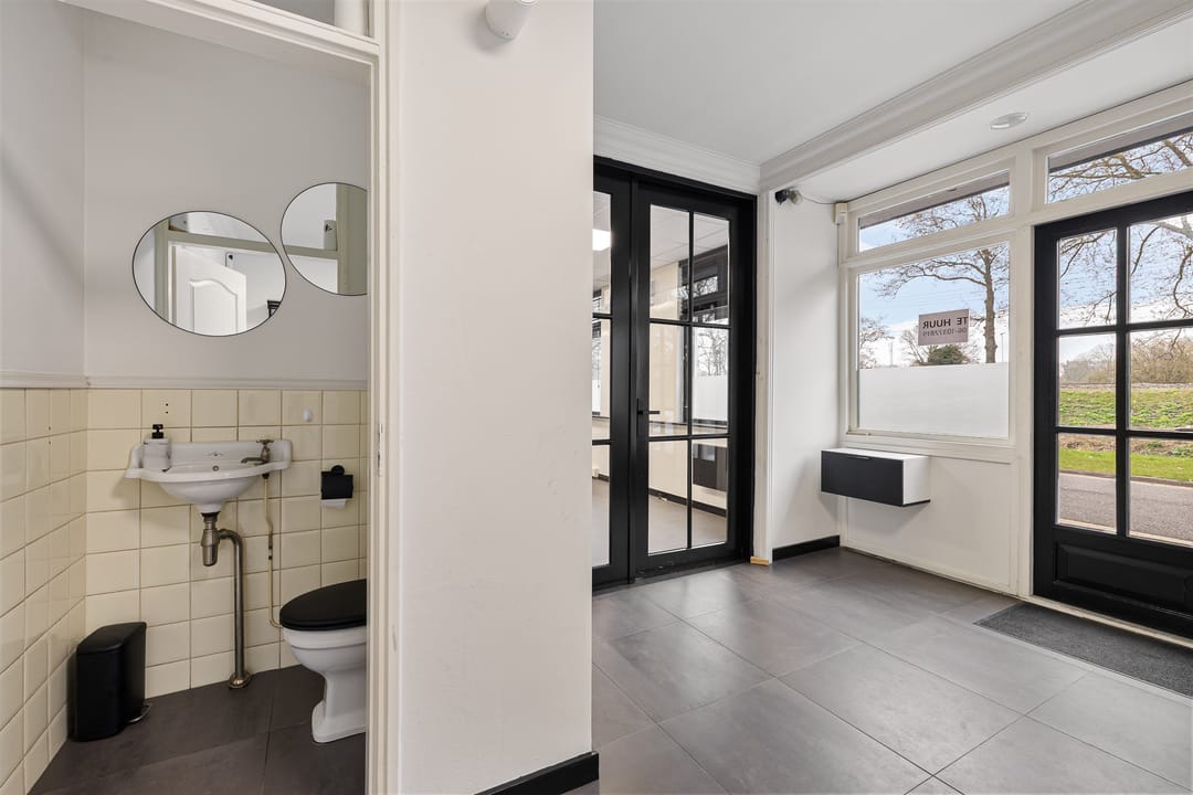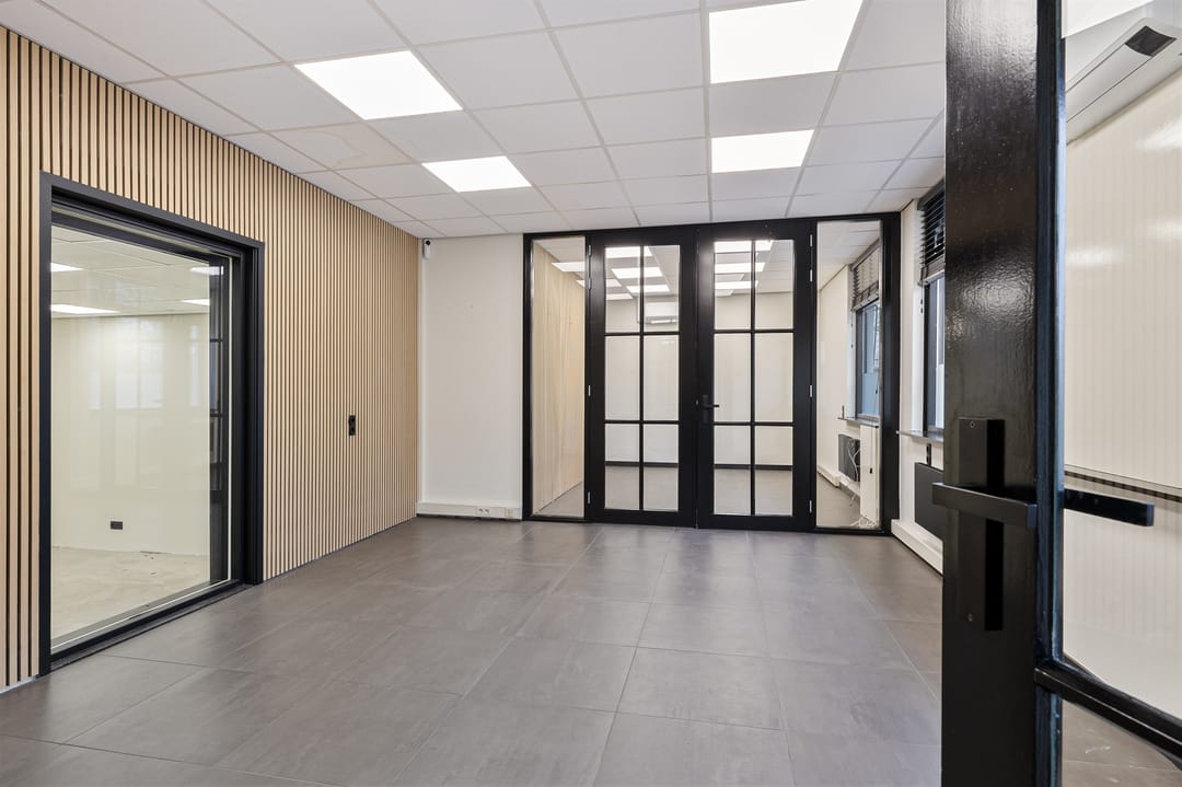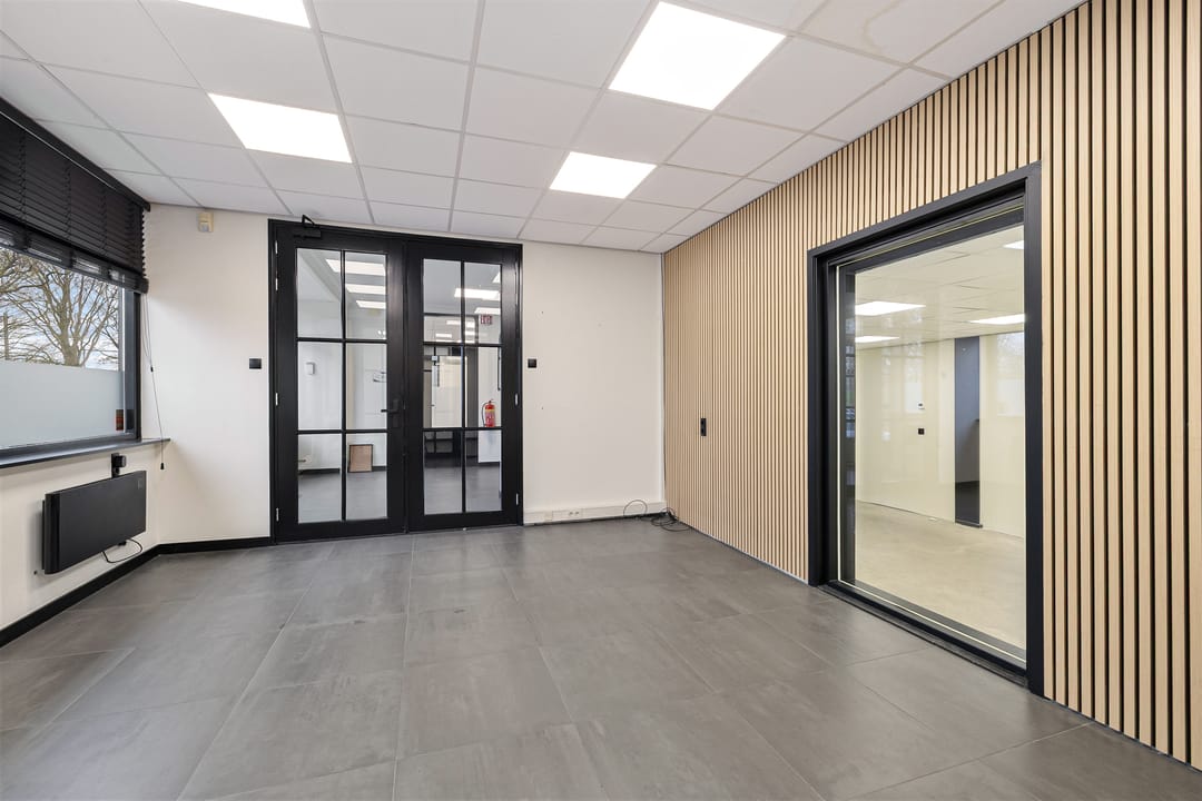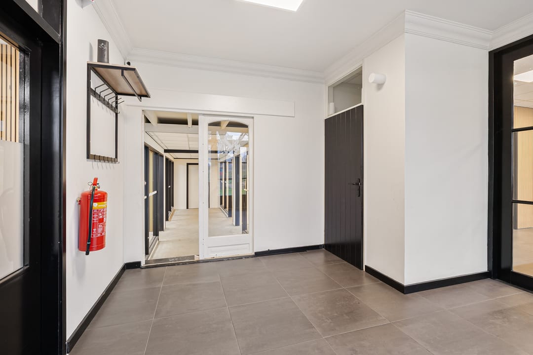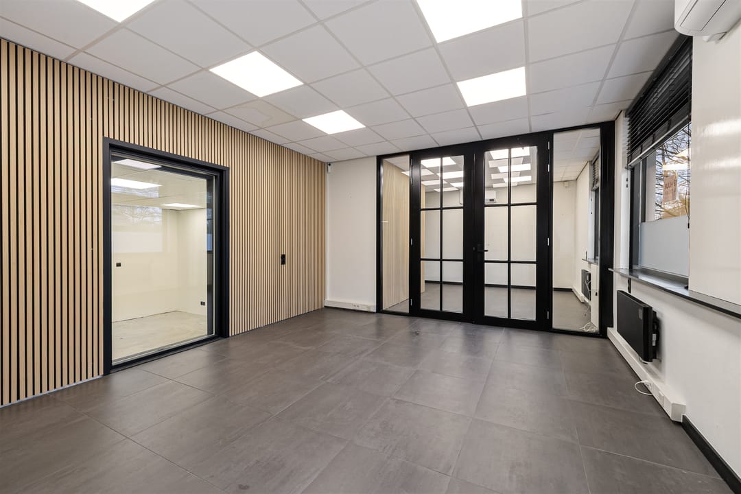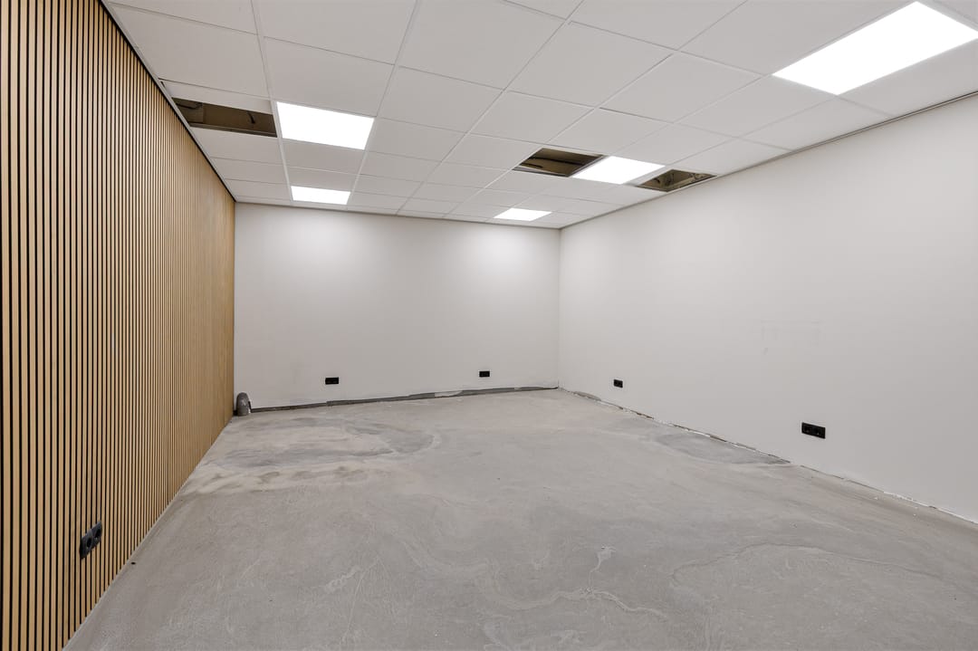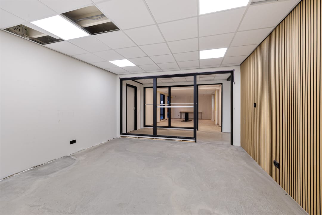 Aan de voorzijde bevinden zich meerdere kantoorruimten, uitgevoerd met systeemplafonds, LED-verlichting en glazen scheidingswanden. Enkele kantoren moeten nog wel afgemaakt worden met toevoeging van glas en vloeren. De representatieve entree en nette afwerking maken deze ruimte direct geschikt voor kantoor- of baliefunctie. Tevens zijn sanitaire voorzieningen en een pantry aanwezig.