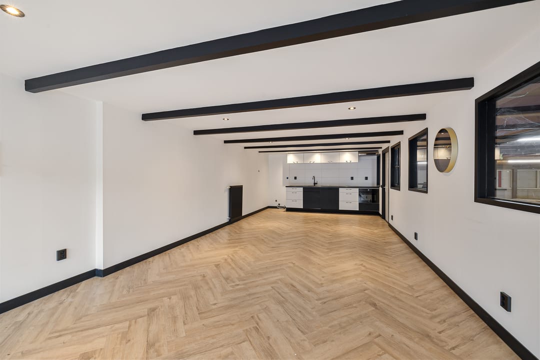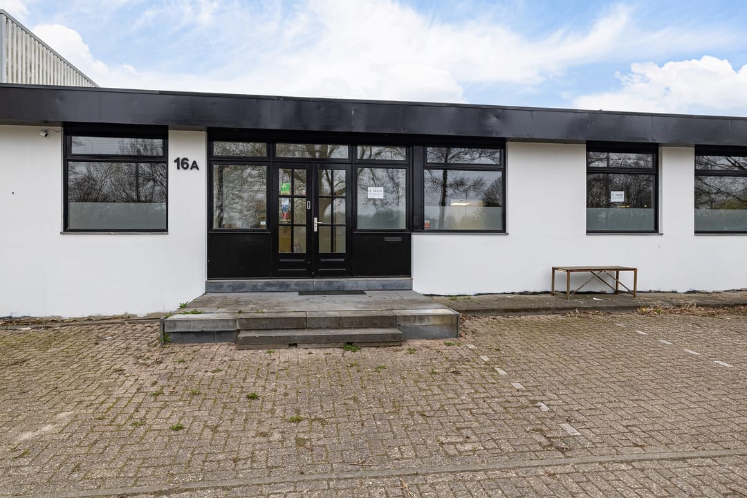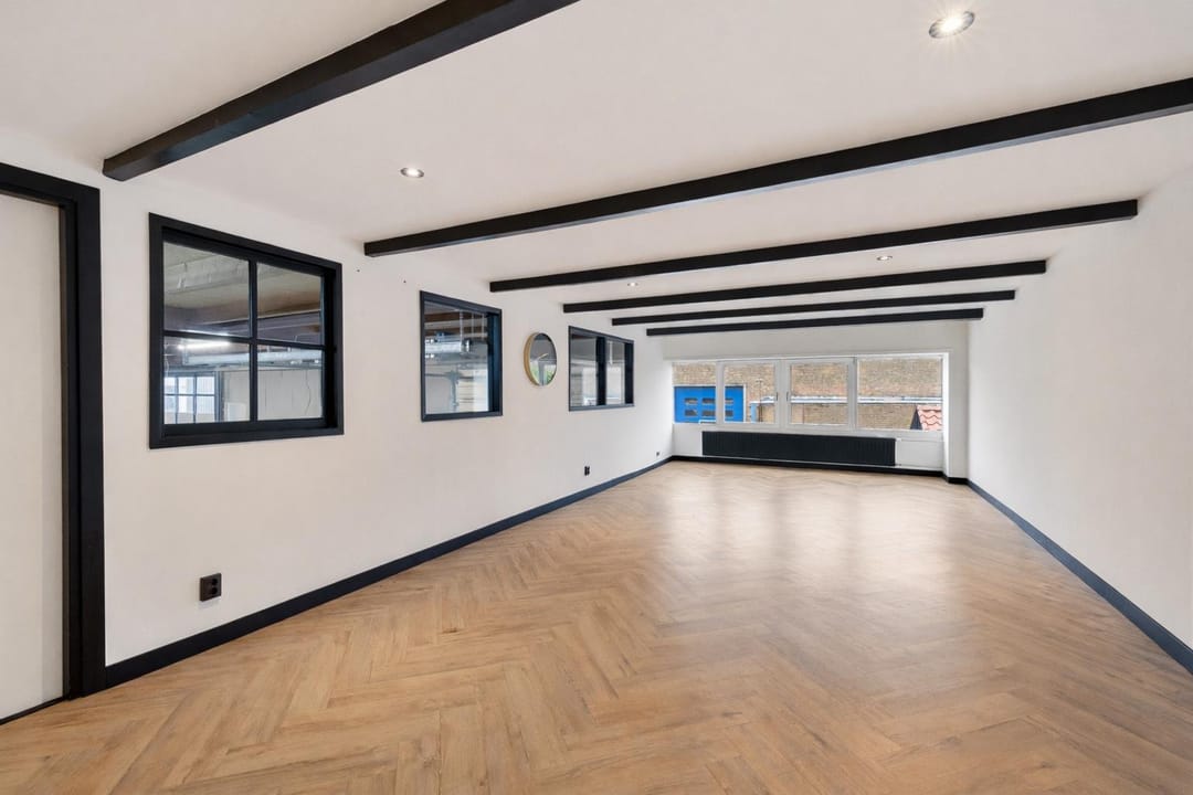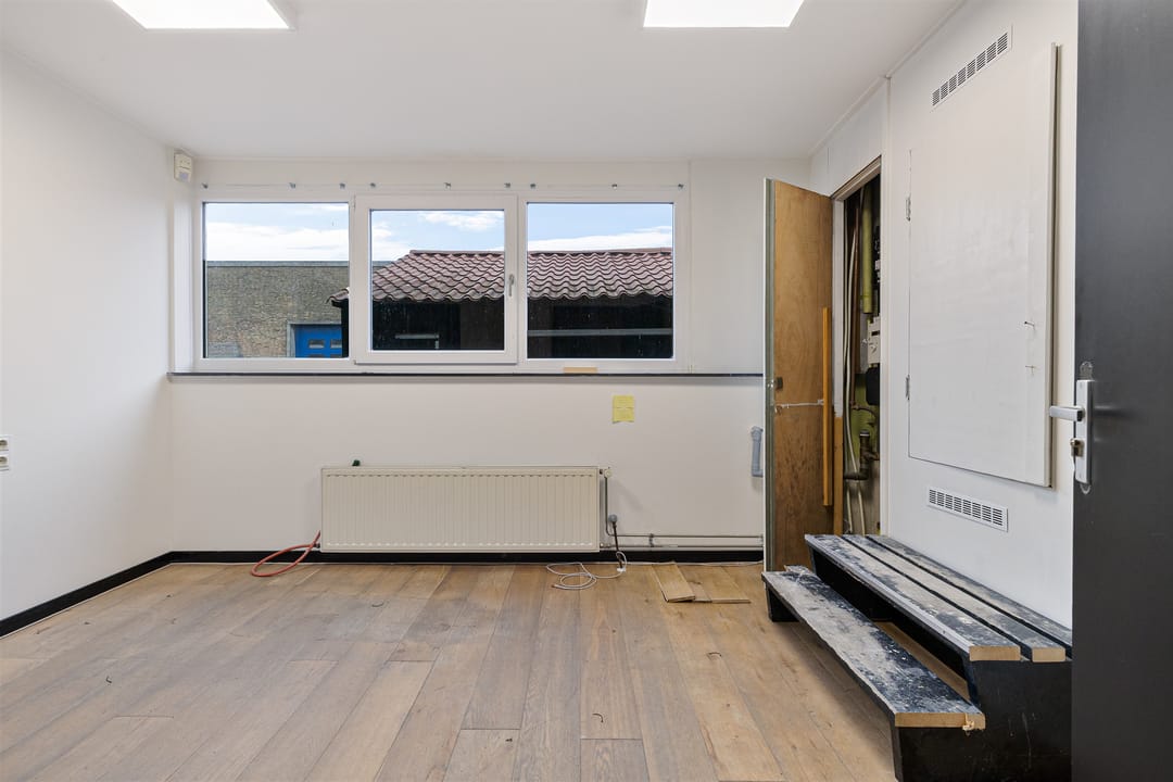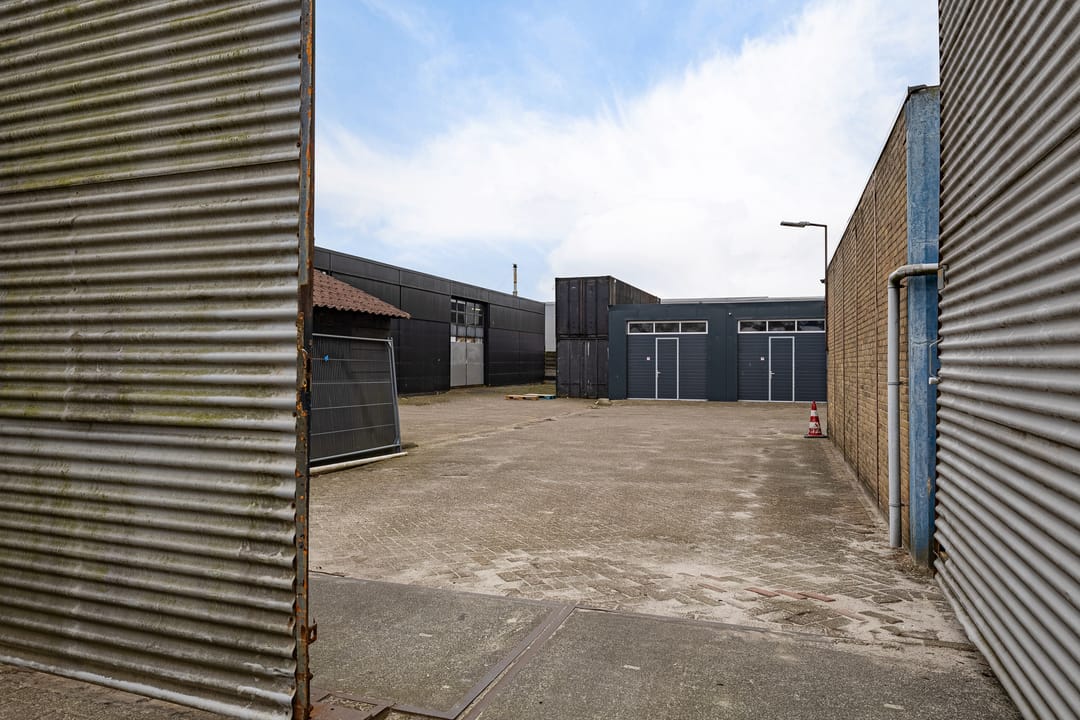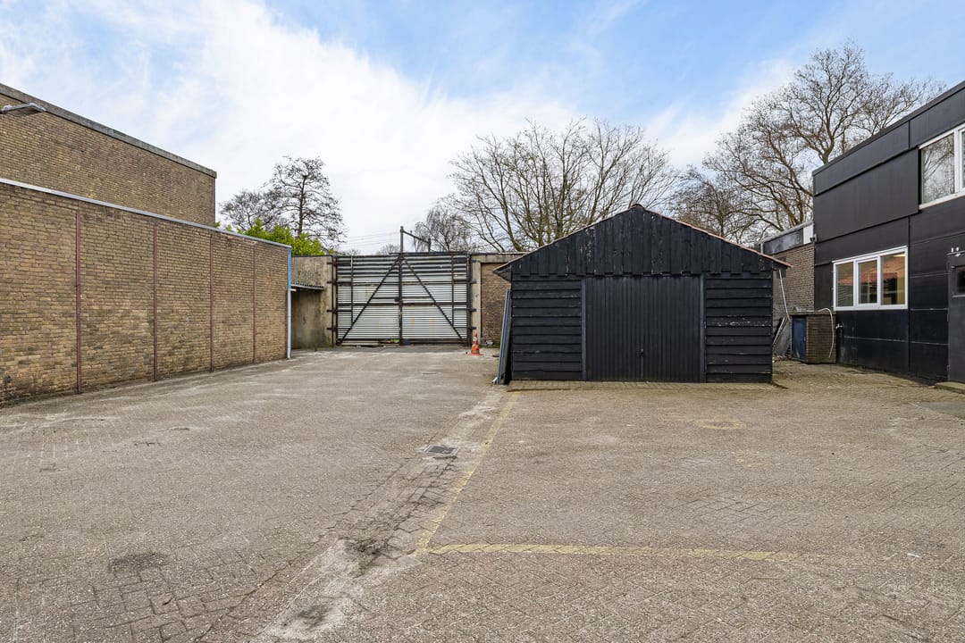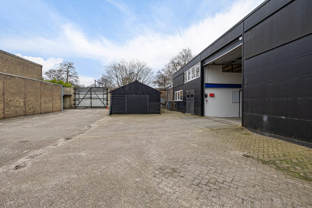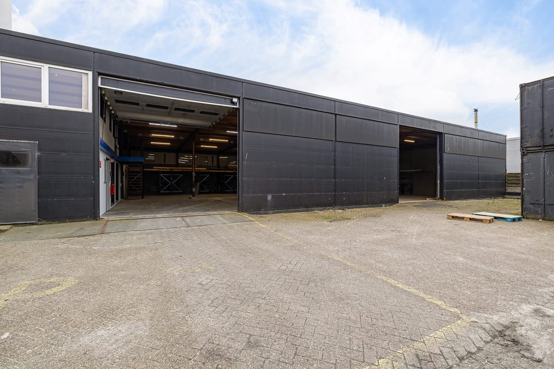 De loods aan de achterzijde betreft een ruime bedrijfsruimte met vrije overspanning, betonvloer en overheaddeur. De vrije hoogte en open structuur maken de ruimte geschikt voor opslag, logistiek en lichte productie.