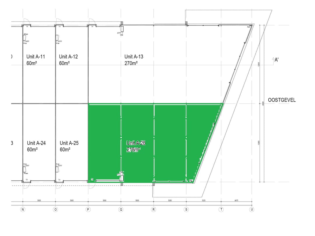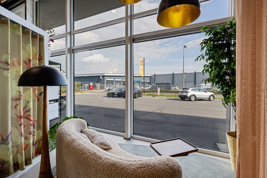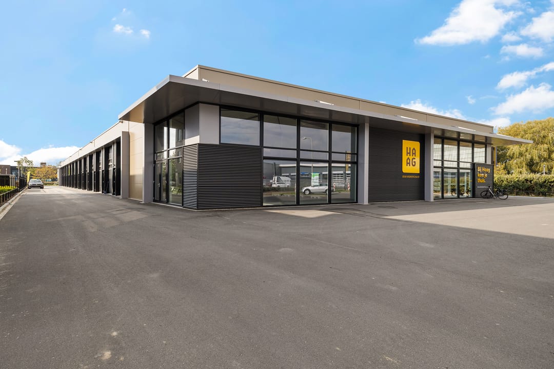 Het betreft een unit van 218 m2 op de zuidoostelijk hoek van het complex, gelegen tegenover Autobedrijf Van der Horst. Gratis parkeren op en rondom het terrein.