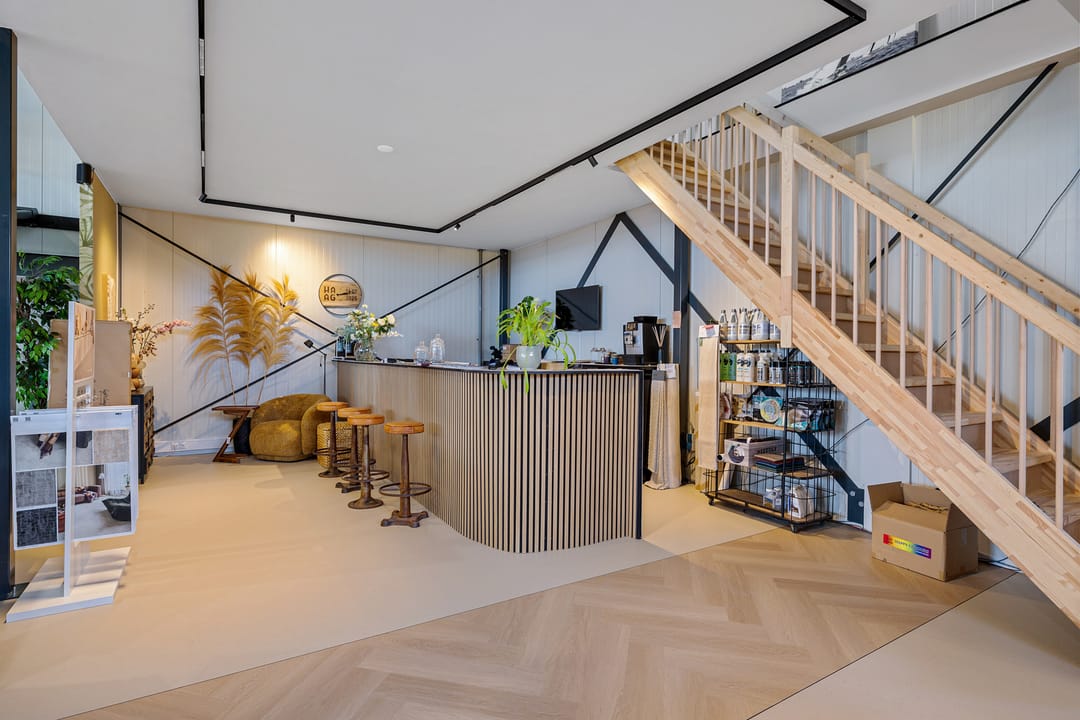 Ter inspiratie hebben we een aantal impressies toegevoegd van het naastgelegen pand, waar Haag Woonspecialist is gevestigd. Deze beelden geven een goed beeld van wat er mogelijk is. De tweede verdieping kan op een vergelijkbare manier worden verbouwd.