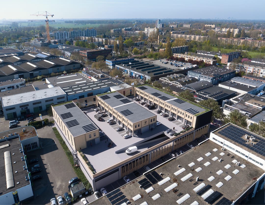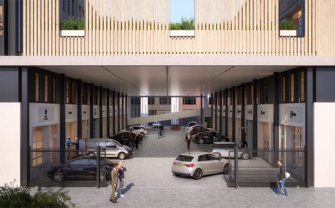 Unittype B - Prachtige units met een stijlvolle duurzame uitstraling, de perfecte combinatie van functionaliteit en stijl met het type B. De unit beschikt over een elektrische overheaddeur met een aparte toegangsdeur. De B units zijn tussenunits, met hoogwaardige afwerking en voorzieningen.