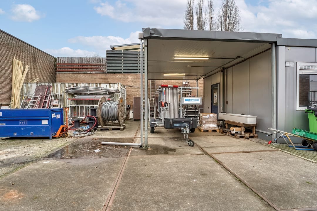 Het bedrijfspand beschikt over maar liefst 10 eigen parkeerplaatsen. Daarnaast zijn er twee afsluitbare buitenterreinen aanwezig, gesitueerd aan weerszijden van het pand, bestaande uit een kleiner buitenterrein van ca. 100 m² en een groter buitenterrein van ca. 215 m². Deze buitenterreinen bieden uitstekende mogelijkheden voor opslag, laden en lossen of andere bedrijfsactiviteiten.