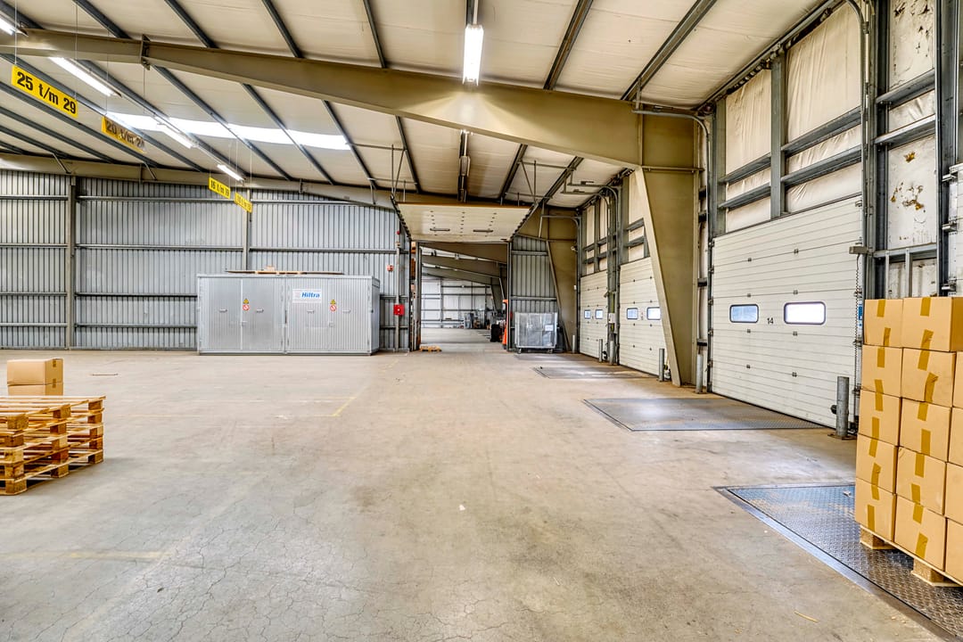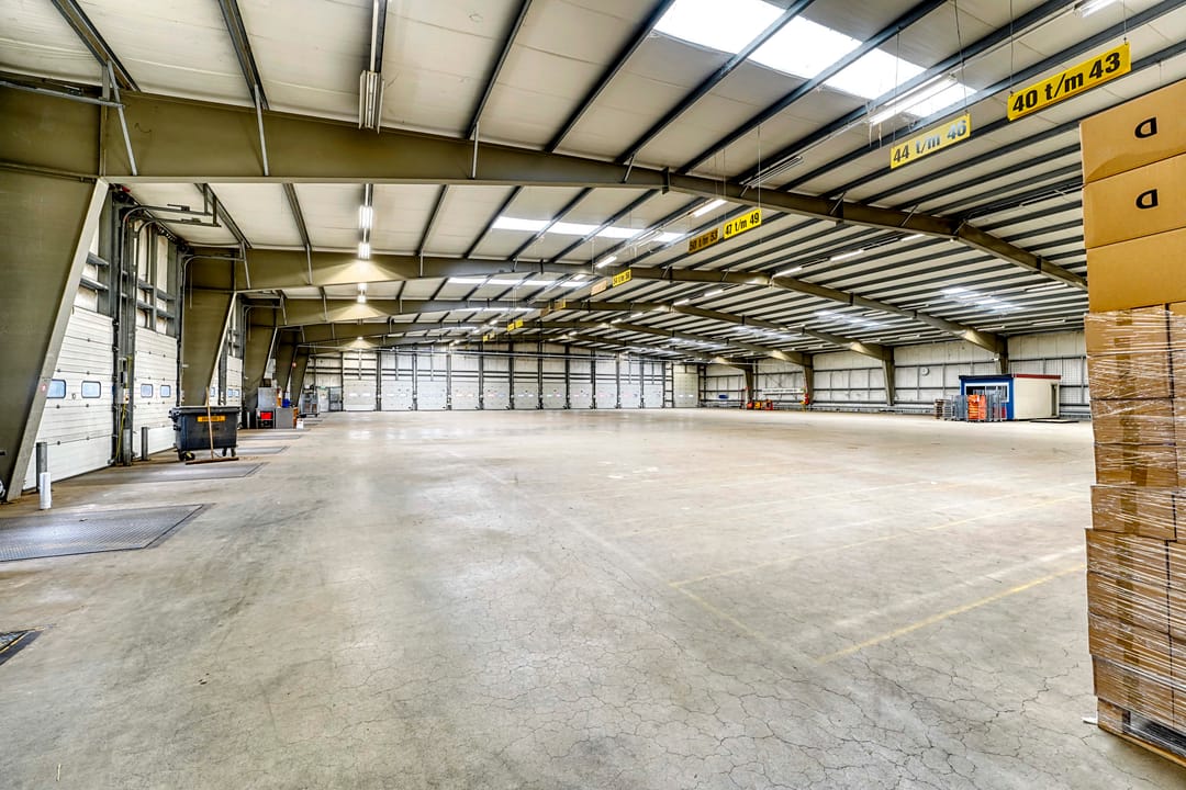 De bedrijfsruimte kenmerkt zich door haar vrije overspanning, relatief zware vloerbelasting én vrije hoogte van ca. 7 meter in de nok. Verder beschikt het object over 27 loading docks.