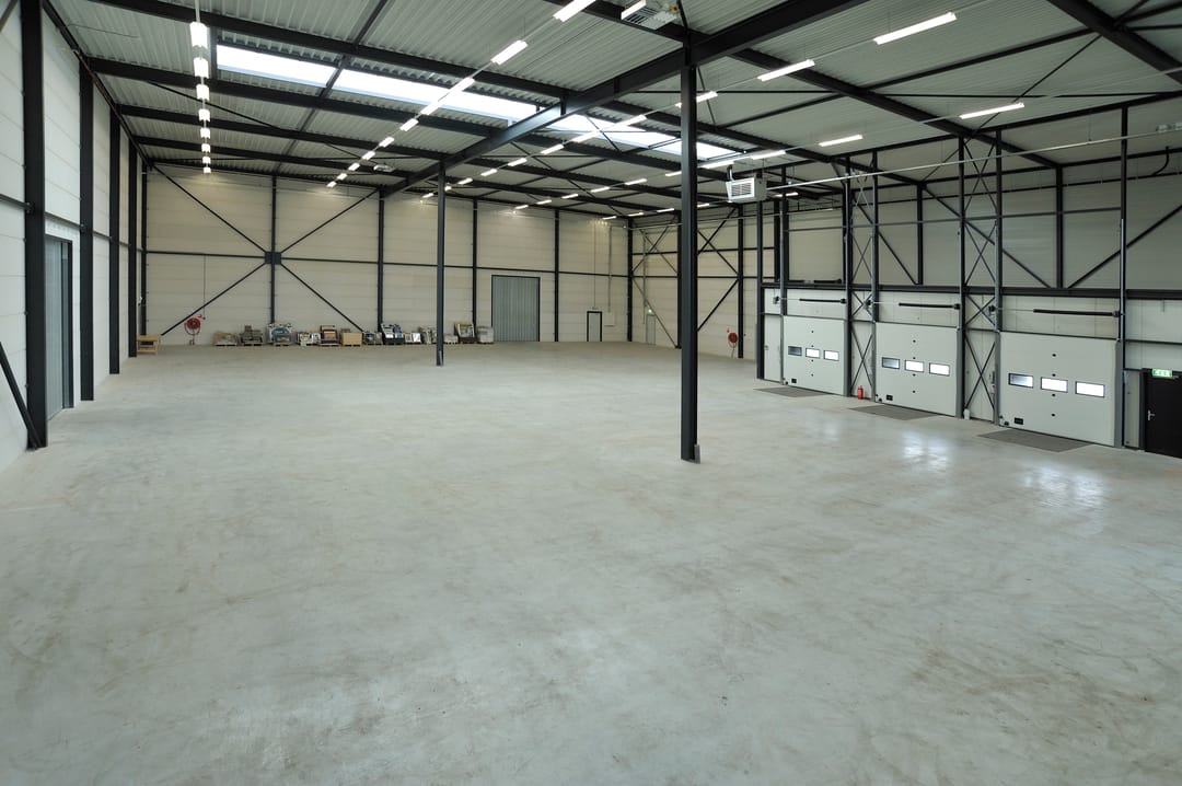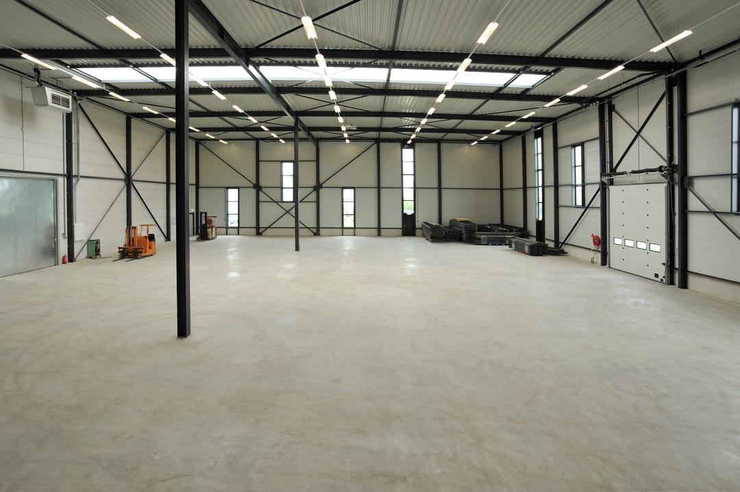- Het buitenterrein is verhard door middel van betonklinkers en stelconplaten ter plaatse van de overheaddeuren.