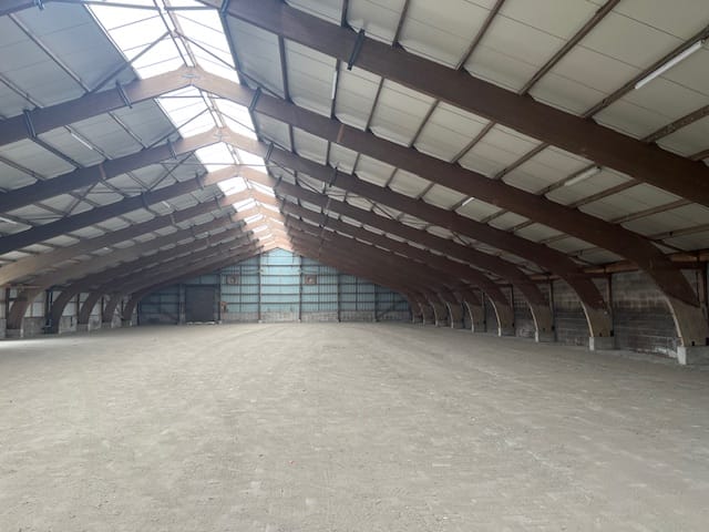 De bedrijfsruimte heeft een oppervlakte van 2.100 m². Het gebouw heeft een constructie van gelamineerde houten spanten. In de nok is een lichtstraat opgenomen. De vloer is van betonklinkers. Het dak en de vloer zijn onlangs vernieuwd. Er zijn aan de voor- en achterzijde overheaddeuren aanwezig.