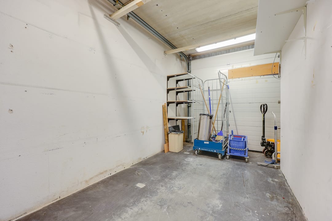 Kadastrale omschrijving: “de bedrijfsruimte met grond en het een/veertiende onverdeeld aandeel in de in- en uitrit, toegangsweg en parkeerplaatsen (mandeligheid)”