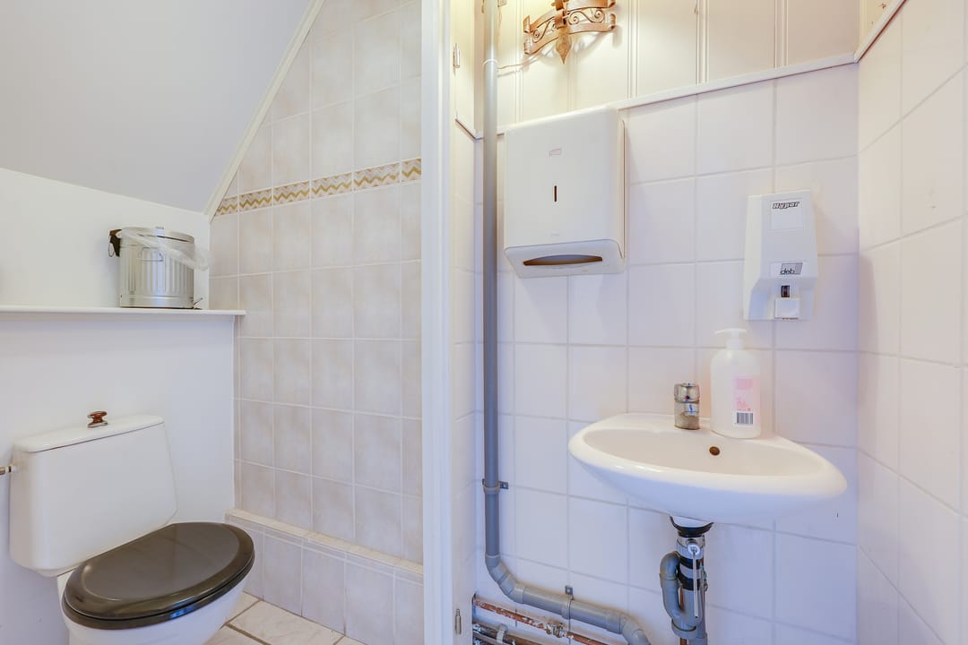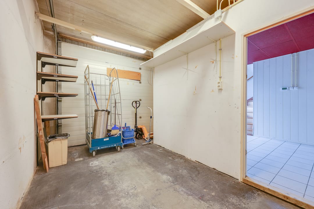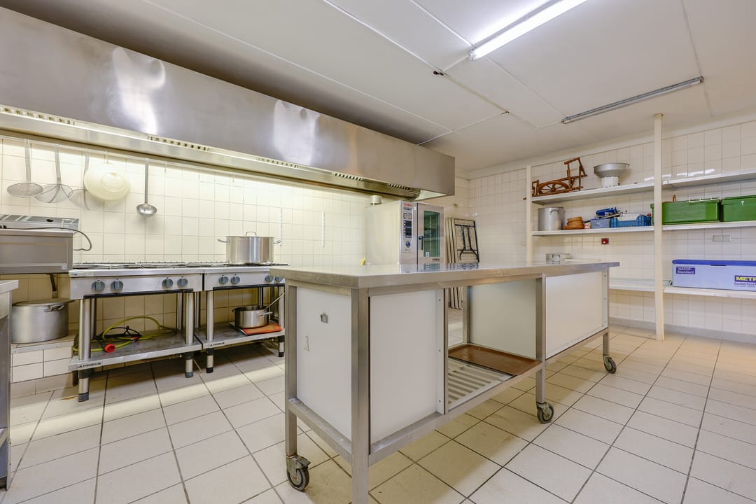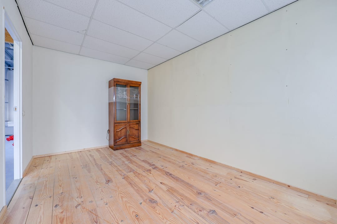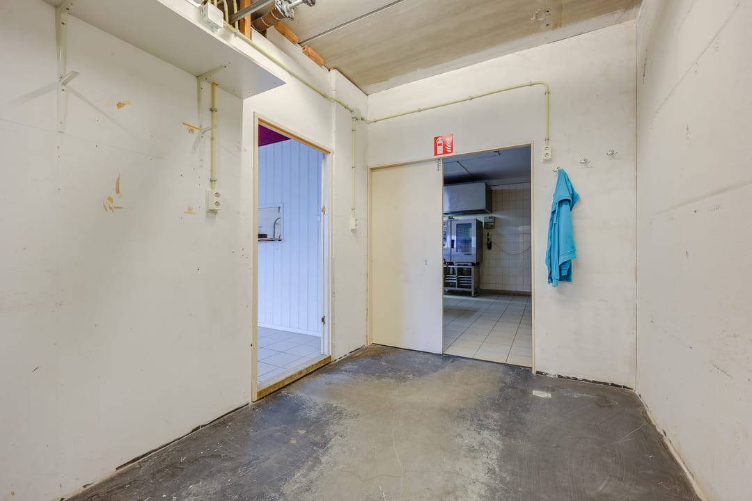 Het totale vloeroppervlak bedraagt circa 129 m² vvo en is verdeeld over de begane grond van 64 m² vvo en de verdieping van 65 m². Op de begane grond bevindt zich aan de voorzijde de entree met ruime hal, toilet en magazijn (ook direct bereikbaar dmv overheaddeur). Vanaf het magazijn heeft men toegang tot een grote voormalige industriële keuken. Via een trap vanuit de hal komt men op de verdieping. Daar bevindt zich een grote ruimte met daglicht en een separate kantoorruimte.
