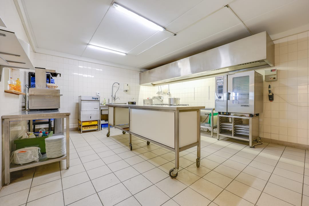 Keuken betegeld en voorzien van apparatuur