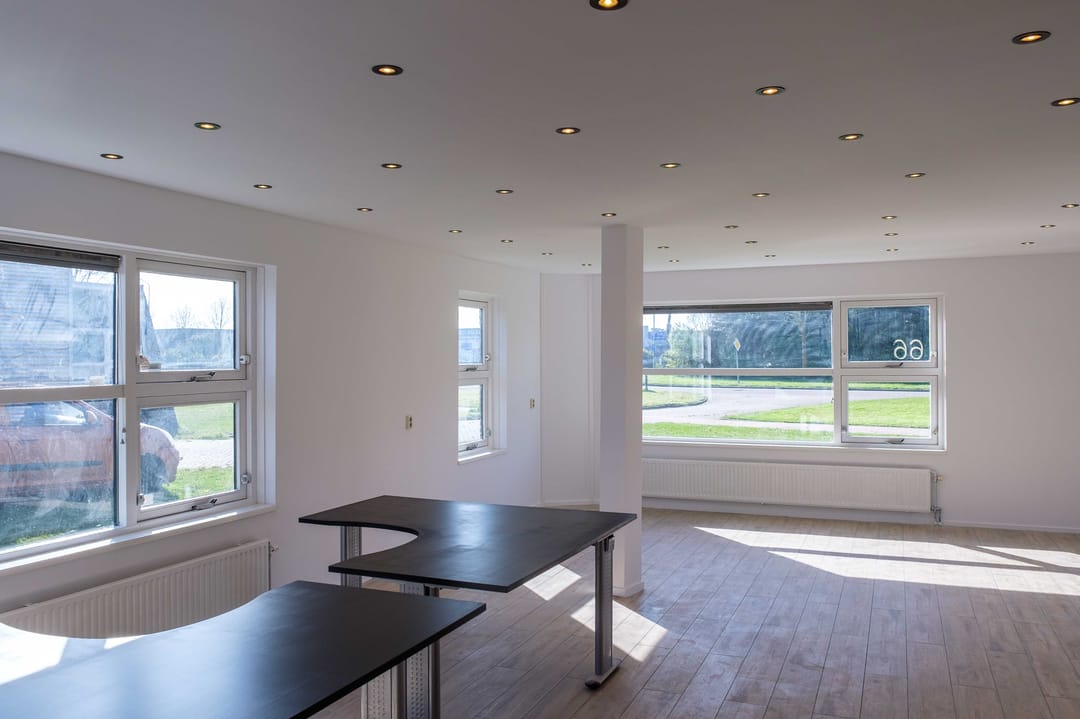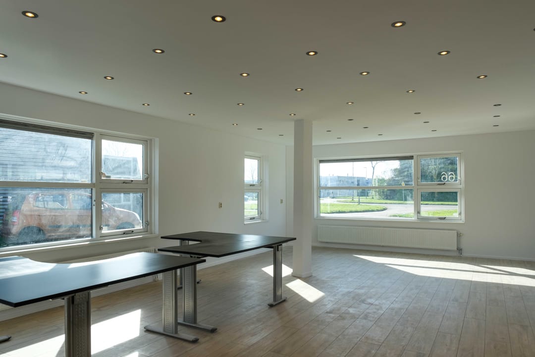 - Begane grond: entree/receptie, kantoor-/vergaderruimte, bedrijfsruimte/opslag, sanitaire voorzieningen;