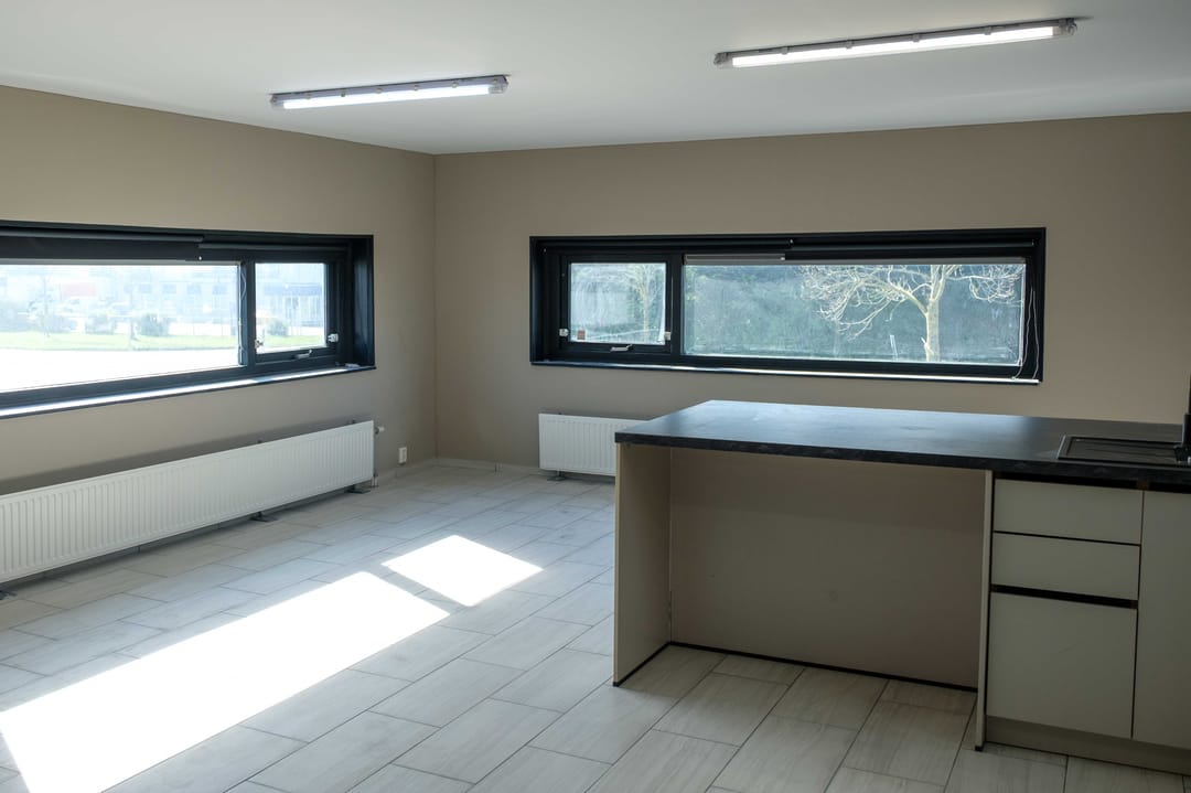 - 1e verdieping: kantoorruimten, open werkruimte, pantry en sanitaire voorzieningen