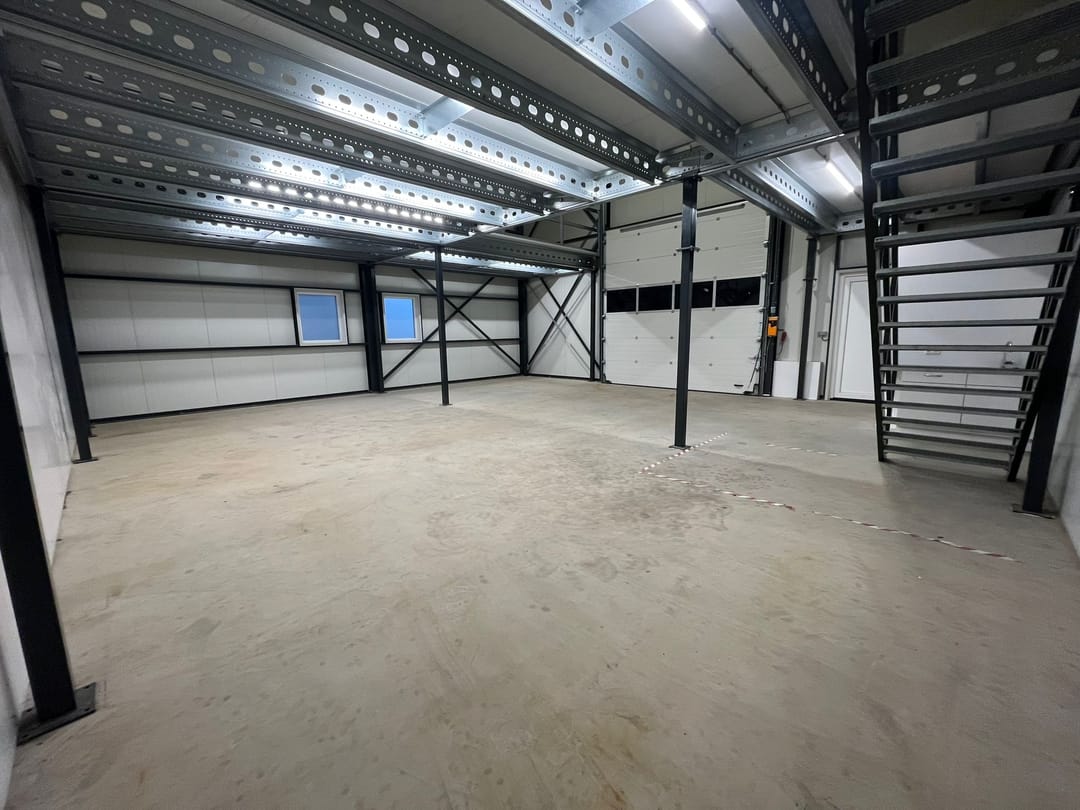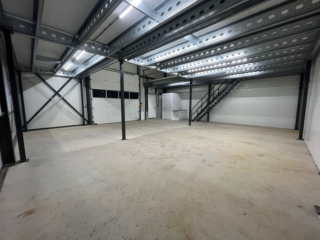 Aan de Taanderij 6A staat een veelzijdige loods van 210 m² (120 m² en 90 m² zolder) te huur, geschikt voor zowel bedrijven als particulieren. De ruimte is netjes afgewerkt en voorzien van vloerverwarming, een toilet, een keukenblok en een meterkast, waardoor je er direct in kunt. De toegang is praktisch geregeld met een grote overheaddeur van 4 bij 4 meter en een aparte loopdeur voor dagelijks gebruik.
