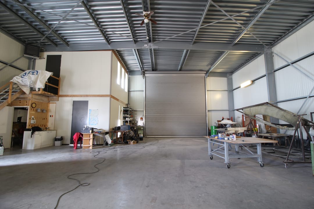 - Overhead doors, three-phase electric power, concrete floor, heater, toilet, pantry, built-in fittings and windows can be opened