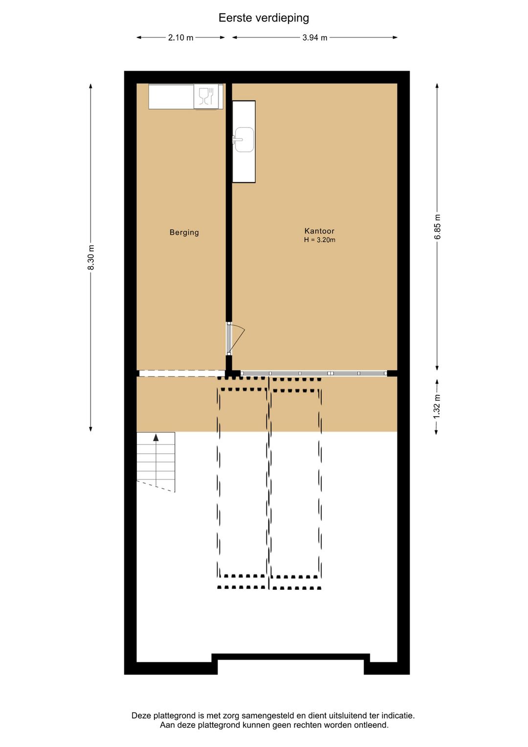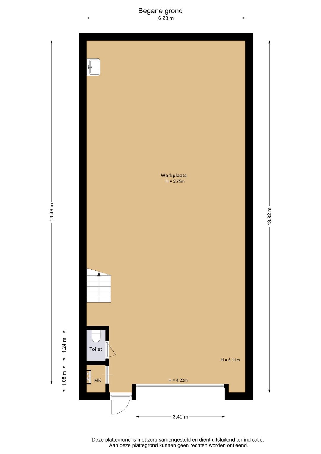 De loods beschikt over een ruime begane grond van circa 84 m², aangevuld met een verdiepingsvloer van circa 50 m². Op de verdieping bevindt zich een keurige kantoorruimte, waardoor werken en opslag efficiënt gecombineerd kunnen worden. Dankzij de aanwezigheid van een toilet en een pantry is het pand van alle gemakken voorzien voor dagelijks gebruik.