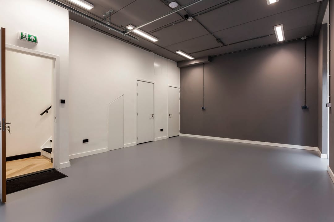 • Monoliet afgewerkte betonvloer belastbaar tot 1.000 kg/m² op de b.g.g en 500 kg/m² verd.