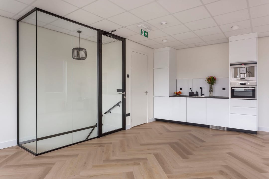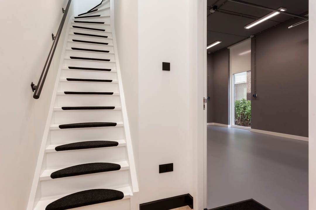 • Trap-verdieping is met stalen glaswand afgewerkt