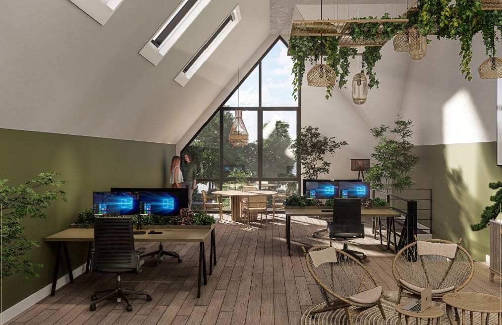 De bovenverdieping zal via een toegangsdeur en eigen trapopgang te bereiken zijn, de verdieping heeft naast een grote glaspartij aan de voorzijde, ook nog 3 dakramen in de zijkant van het dak.