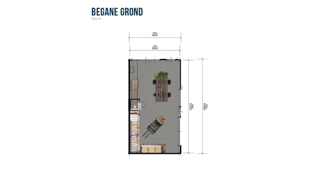 Zowel de begane grond als verdieping zijn volledig open ruimtes in casco uitvoering.