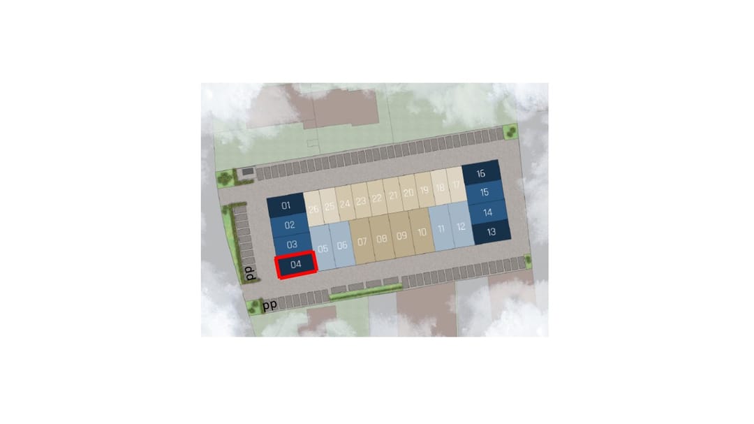 Het betreft hier unit 4, de rechtse hoekunit van het gebouw met 4 eigen parkeerplaatsen.