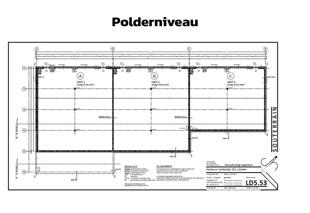- Vloerbelasting polderniveau: circa. 1.500 kg/m2