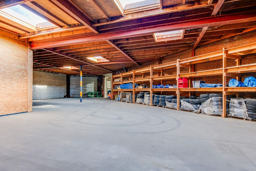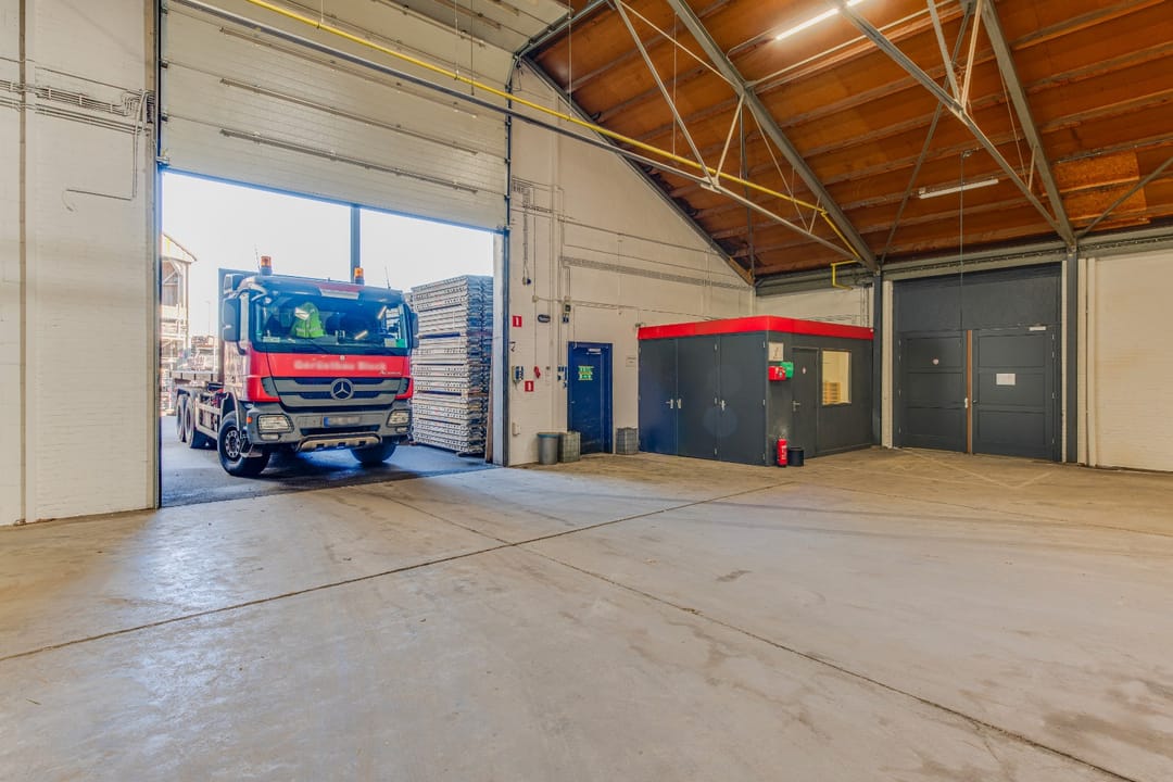 Toegang middels elektrische overheaddeur (vrije hoogte 4,50 m).