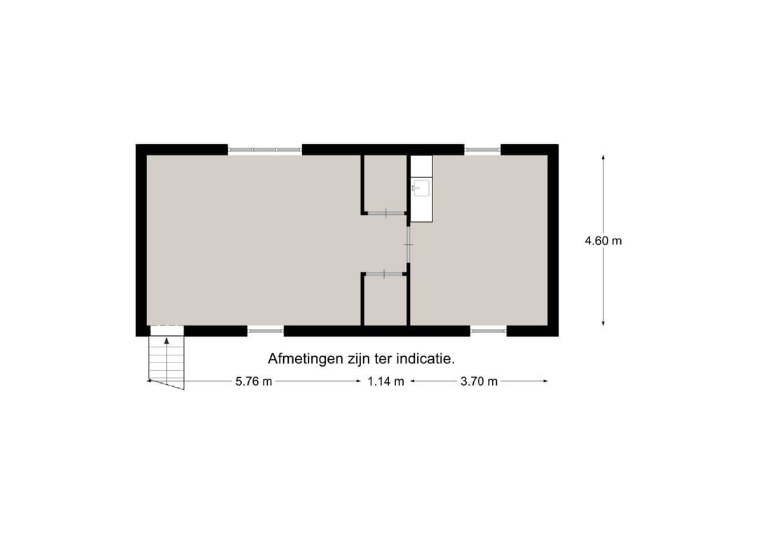 De bedrijfsruimte heeft in totaal een oppervlakte van ca. 165 m² en is als volgt ingedeeld:
