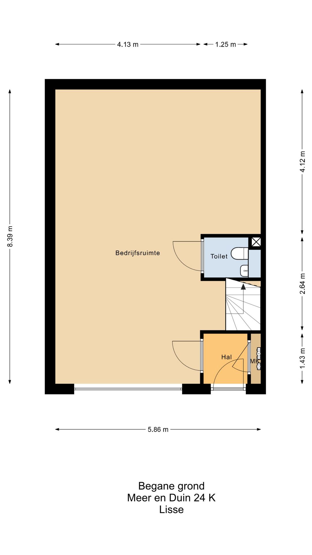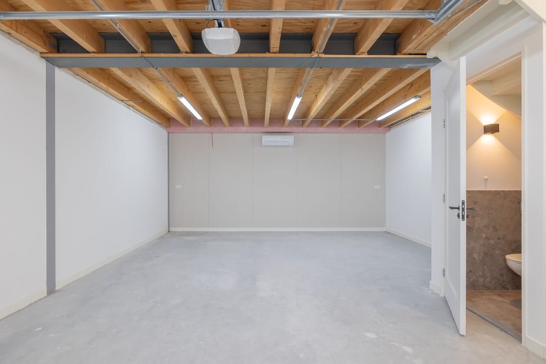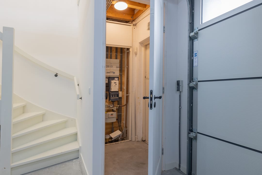 Begane grond: separate entree, halletje met meter-/groepenkast, bedrijfsruimte v.v. elektrisch bedienbare overheaddeur en verwarmen/koelen middels airco-unit, een modern vrijdragend toilet met fonteintje. Vanuit de bedrijfsruimte een trap naar de kantoorruimte op de 1e verdieping.