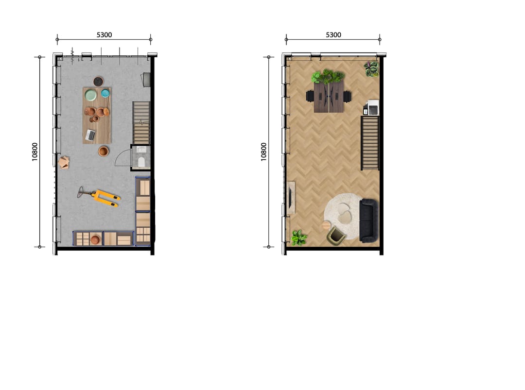 Totaal: ca. 120 m² BVO per bedrijfsruimte.