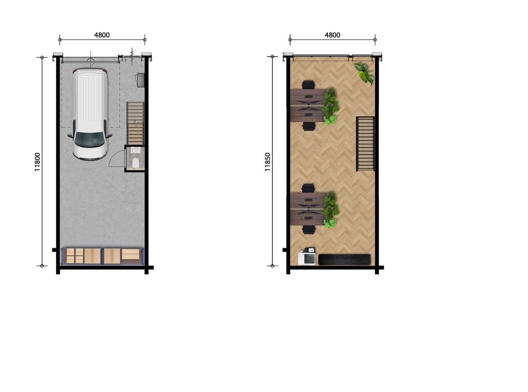 Bij type 6 behoren 2 parkeerplaatsen per bedrijfsruimte.