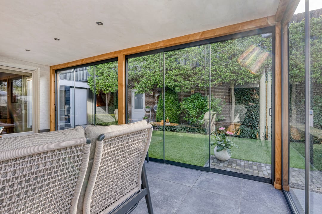 Via de achtertuin kom je in de berging voor o.a. fietsenstalling en kun je via de deur aan de zijkant naar buiten.