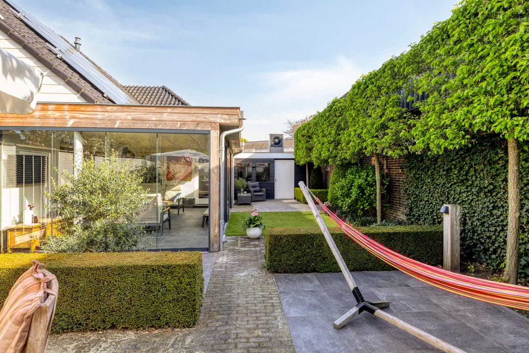De achtertuin biedt veel privacy.
