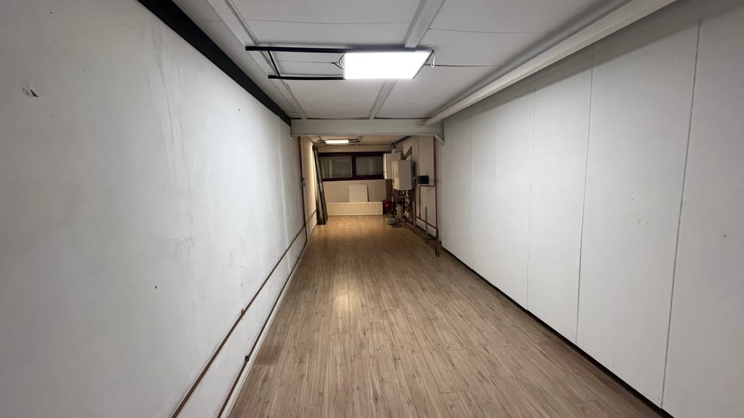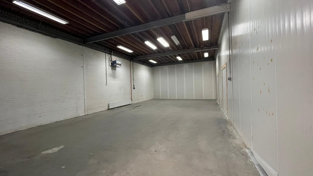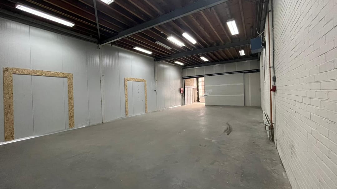 De bedrijfsruimte van 290m2 is nu opgesplitst in 2 afzonderlijke gelijkwaardige ruimtes door middel van een sandwichpanelen wand met de mogelijkheid hier een doorgang/1 ruimte van te maken.