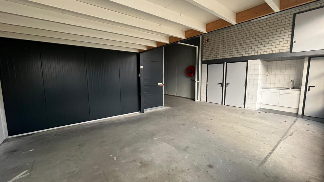 Via een van de twee elektrische overheaddeur bereikt u de bedrijfsruimte.