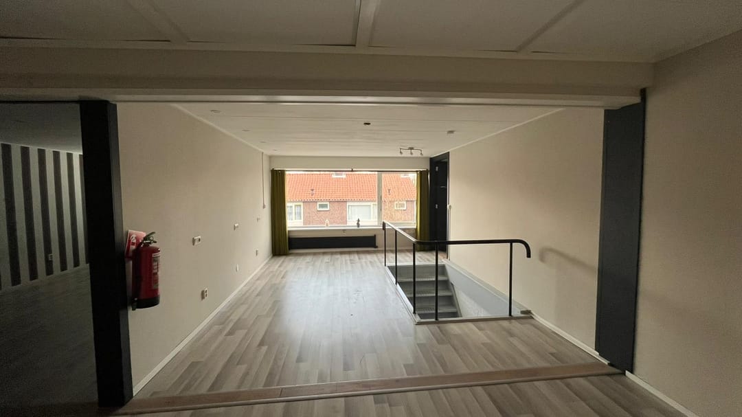 De kantoorruimte is gelegen op de 1e verdieping en is bereikbaar middels een gezamenlijke entree op de begane grond. Zowel de linkerzijde als de rechterzijde beschikt over een keuken en toiletgroep. Op de bovenverdieping bevinden zich 2 keukens en 3 toiletten. Deze ruimtes zijn van elkaar af te sluiten voor maximale flexibiliteit.