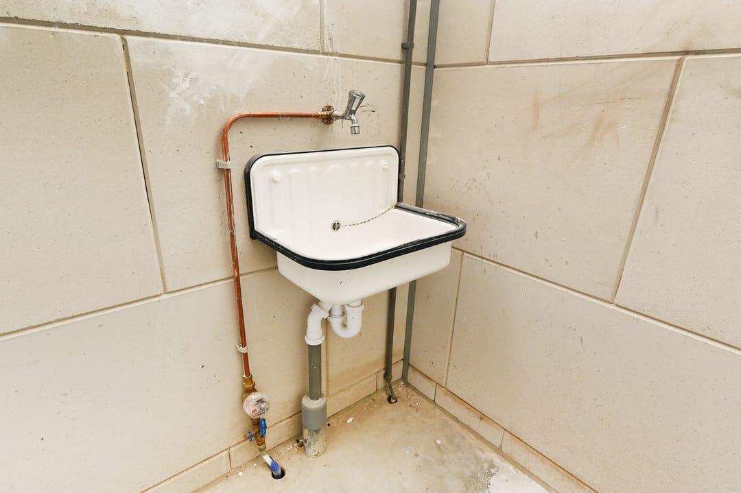 - voorzien van elektra, verlichting en uitstortgootsteen met tapkraan