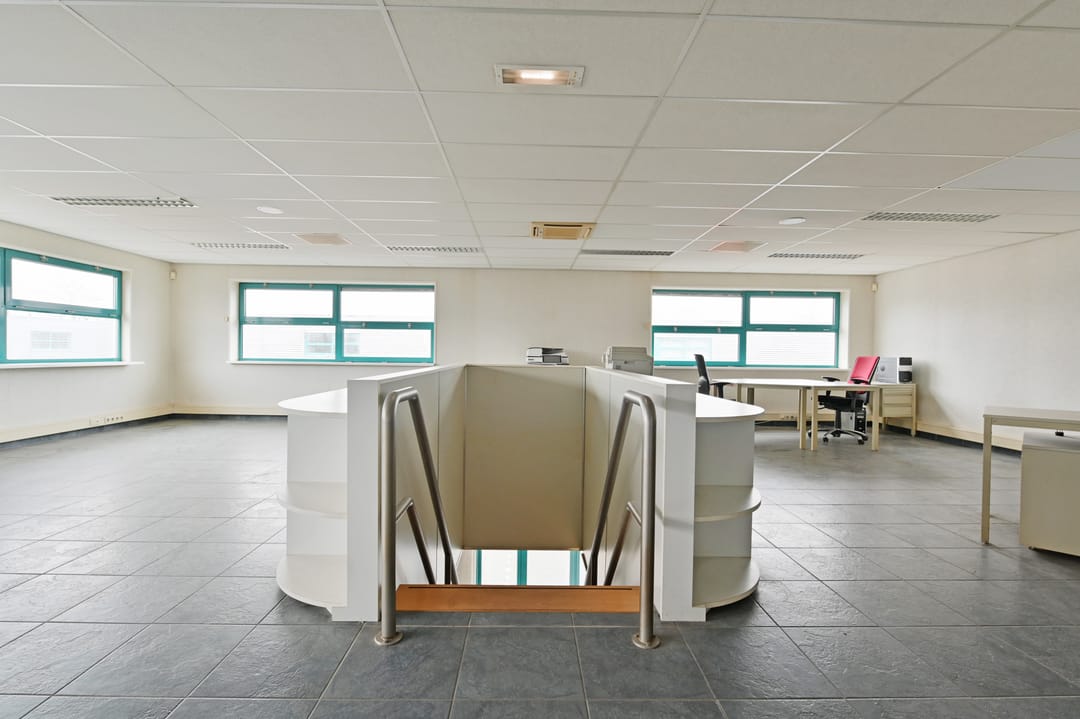 Via een vaste trap bereikt u de eerste verdieping. Deze verdieping is dankzij raampartijen aan beide zijden zeer licht en biedt diverse gebruiksmogelijkheden, bijvoorbeeld als kantoor- of opslagruimte. De verdieping is voorzien van een systeemplafond met verlichting, vaste kastruimte en verwarming en airco.
