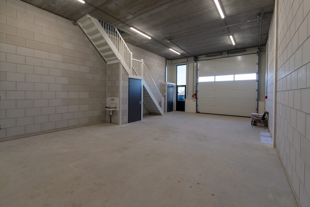 De bedrijfsruimte is o.a. voorzien van een elektrisch bedienbare overheaddeur (4,20m hoog x 3,80m breed), een separate loopdeur, een monolithisch afgewerkte betonvloer op begane grond met een maximale vloerbelasting van ca. 1.000 kg/m², LED verlichtingsarmaturen en keurige sanitaire voorzieningen. De vrije hoogte in de bedrijfsruimte bedraagt ca. 4,65 meter onder de betonnen verdiepingsvloer.