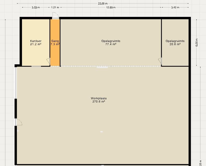 Door verhuurder zal een tussenwand geplaatst worden ter hoogte van de linker overheaddeur op de foto’s.