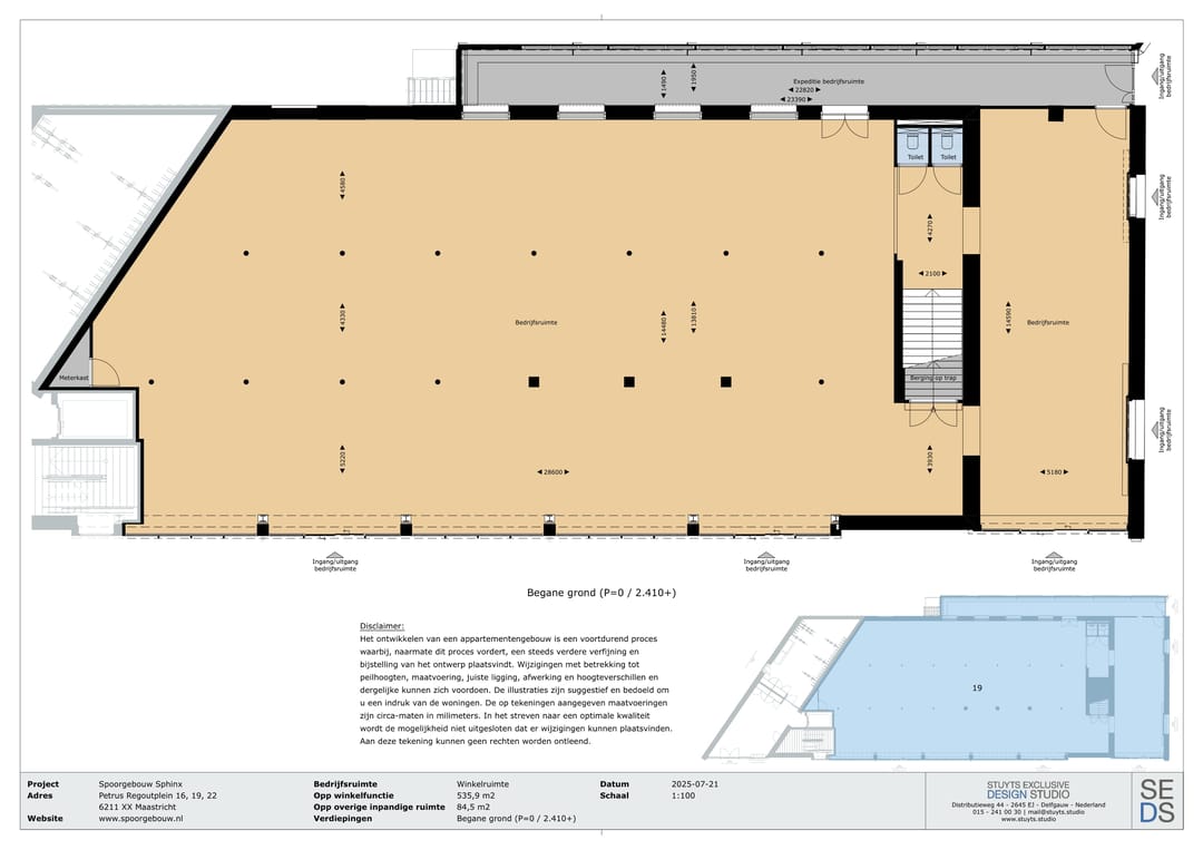 Indeling: ca. 536 m² VVO winkel- / kantoorruimte op de begane grond en ca. 85 m² VVO opslagruimte in het souterrain.