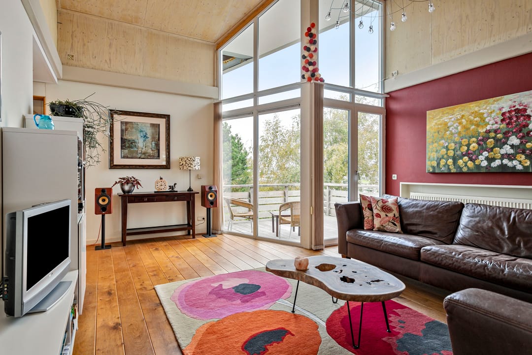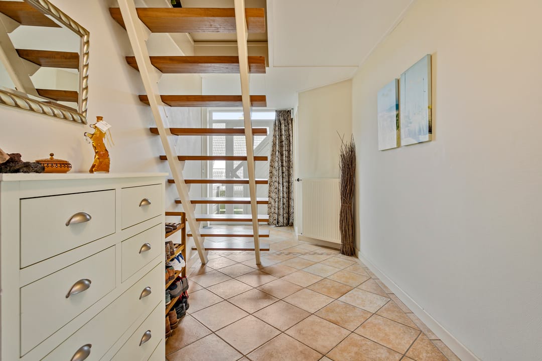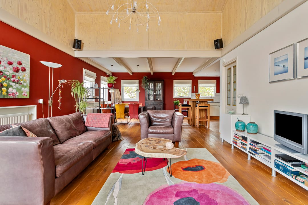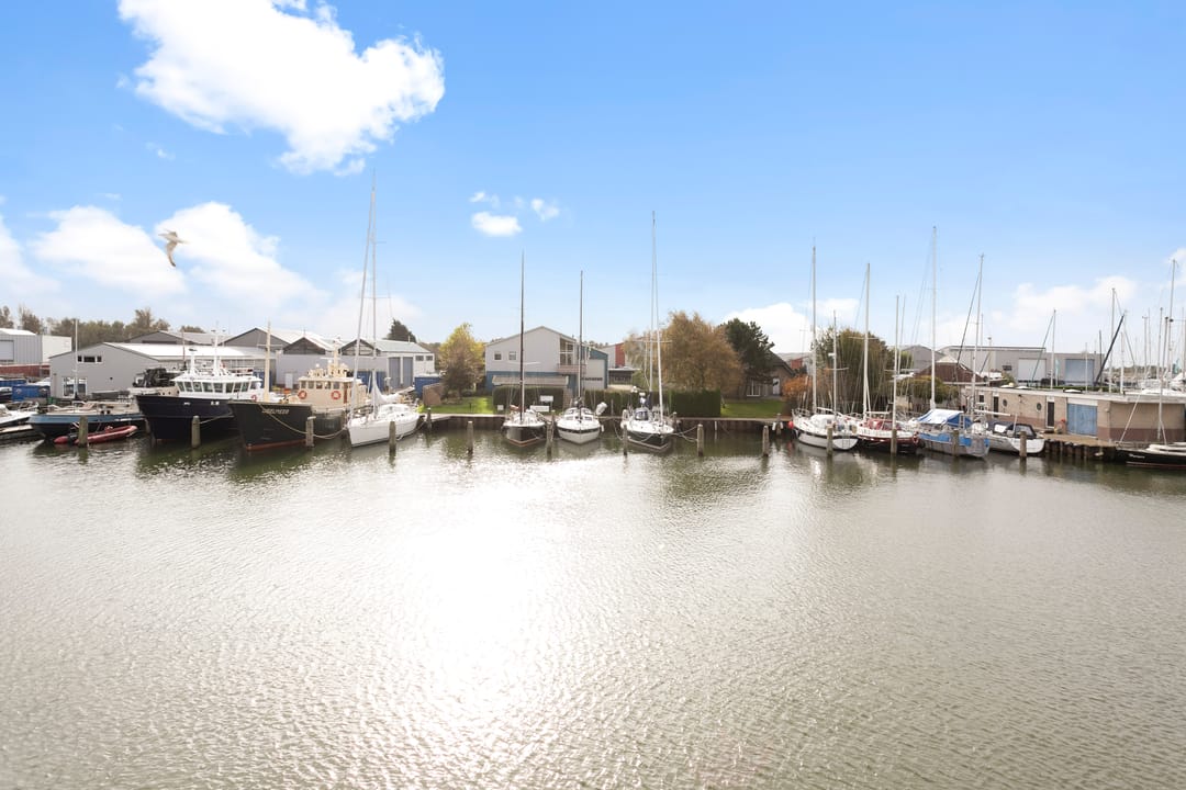 Woning: Totaal oppervlakte van ca. 171,8 m2. De woning welke op een praktische sfeervolle manier in het geheel is geïntegreerd, heeft een eigen trapopgang langs de westzijde van het pand. Bij entree komt u in een ruime hal met toilet, waar ook de vaste trap naar de zolderetage aanwezig is. De woonkamer met open keuken en deels een extra hoogte in de kap is v.v. een eiken vloer en aangrenzend balkon (ca. 13,7 m2)met uitzicht op het water. De woonkamer is opvallend licht dankzij de hoge raampartijen, waardoor er een prettige en open sfeer ontstaat. Verder biedt de woning nog drie ruime slaapkamers en een badkamer v.v. vloerverwarming, ruim ligbad en douche. Boven een deel van de woning ligt een royale zolderetage (ca. 59,6 m2) met veel bergmogelijkheden en een hobbyruimte. Deze zou met wat aanpassingen kunnen dienen als extra slaapkamer.