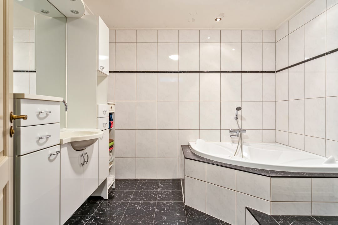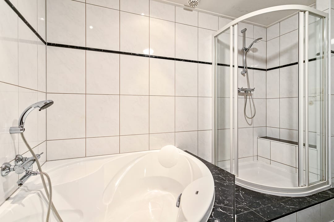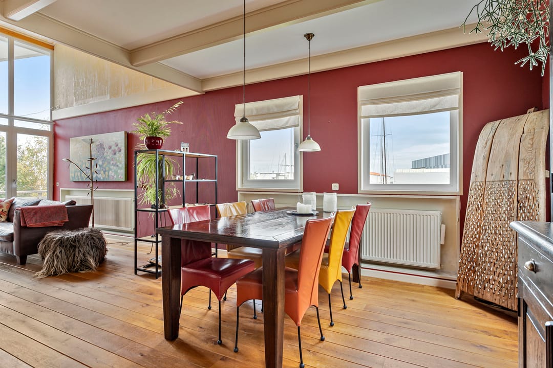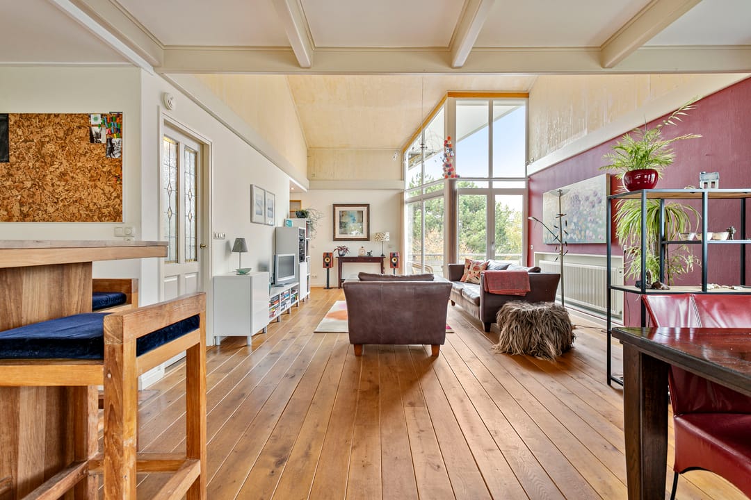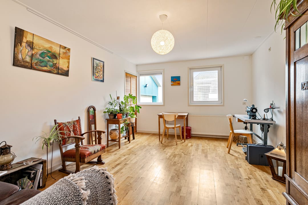 Woning: Totaal oppervlakte van ca. 171,8 m2. De woning welke op een praktische sfeervolle manier in het geheel is geïntegreerd, heeft een eigen trapopgang langs de westzijde van het pand. Bij entree komt u in een ruime hal met toilet, waar ook de vaste trap naar de zolderetage aanwezig is. De woonkamer met open keuken en deels een extra hoogte in de kap is v.v. een eiken vloer en aangrenzend balkon (ca. 13,7 m2)met uitzicht op het water. De woonkamer is opvallend licht dankzij de hoge raampartijen, waardoor er een prettige en open sfeer ontstaat. Verder biedt de woning nog drie ruime slaapkamers en een badkamer v.v. vloerverwarming, ruim ligbad en douche. Boven een deel van de woning ligt een royale zolderetage (ca. 59,6 m2) met veel bergmogelijkheden en een hobbyruimte. Deze zou met wat aanpassingen kunnen dienen als extra slaapkamer.